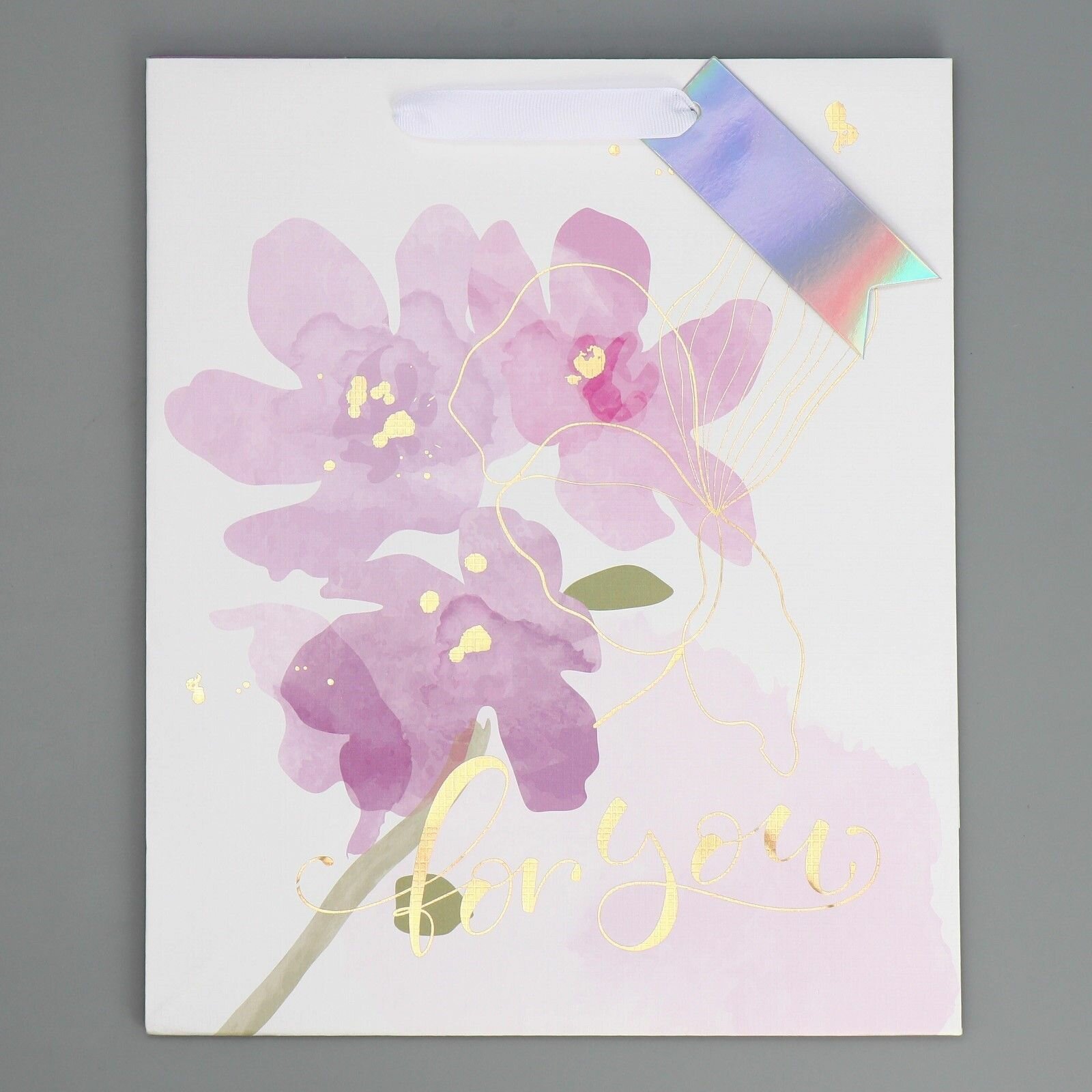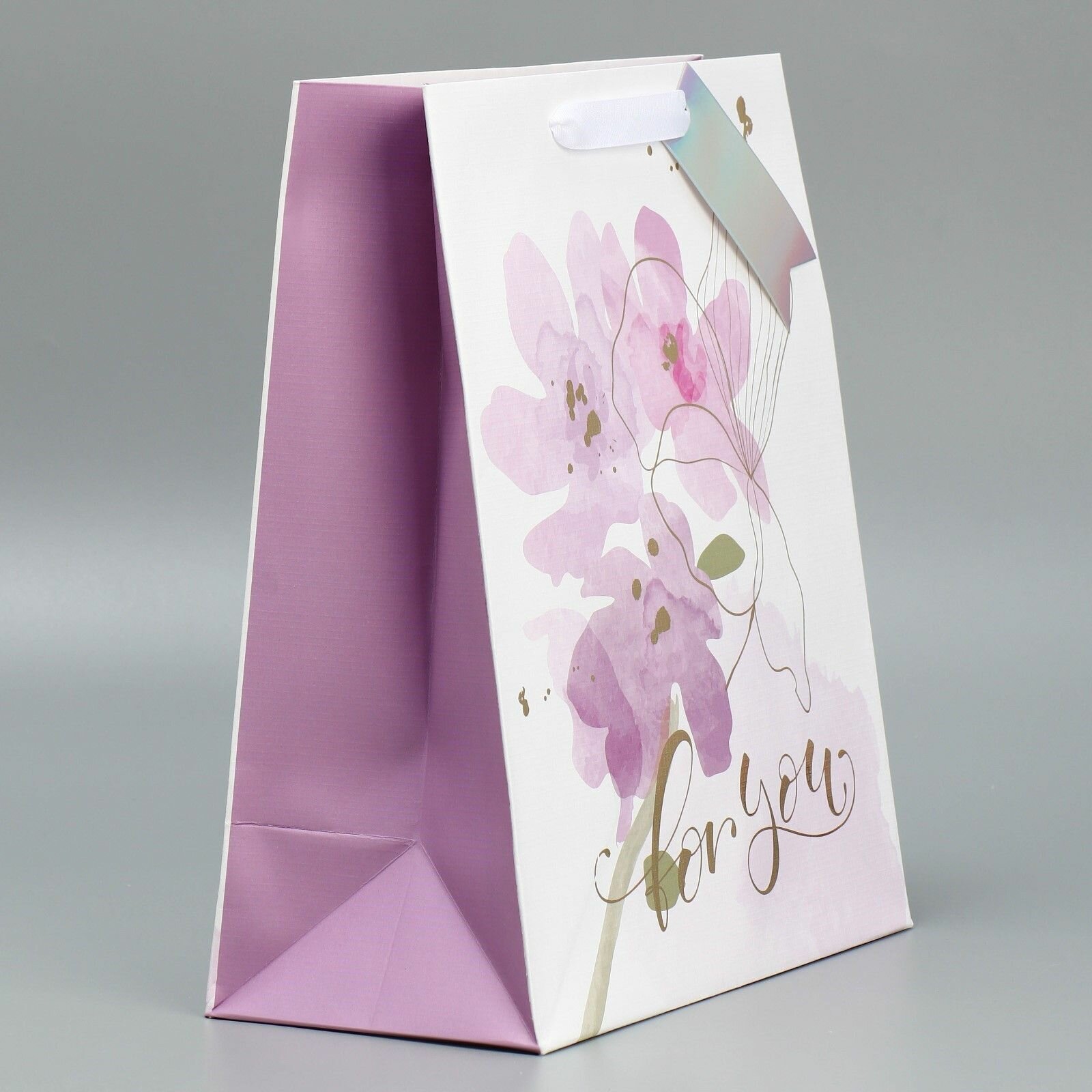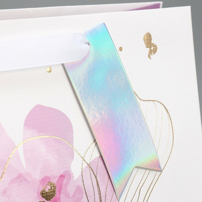 Пакет подарочный ламинированный, упаковка, тиснение, Нежность , 25 х 30.5 х 12.5 см