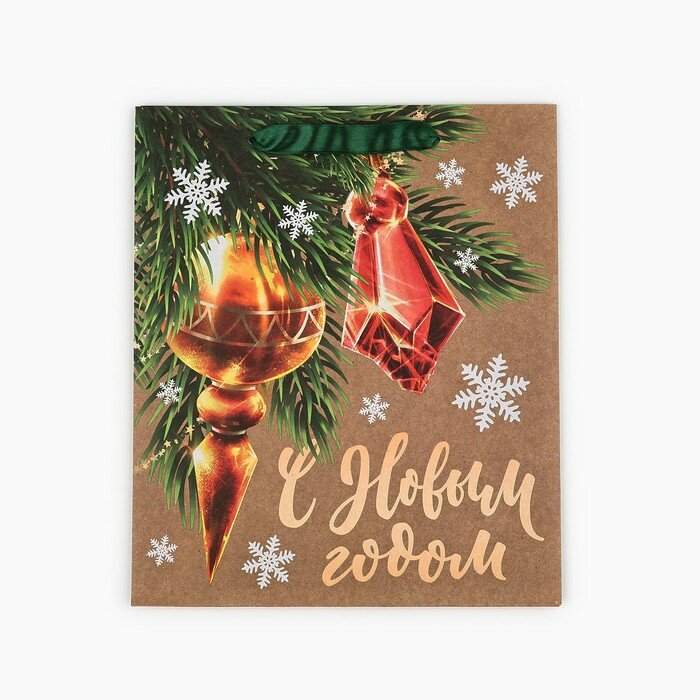 СохранитьПакет подарочный новогодний крафтовый вертикальный «С Новым годом», ёлочные игрушки, ML 23 х 27 х 11.5 см интересное: