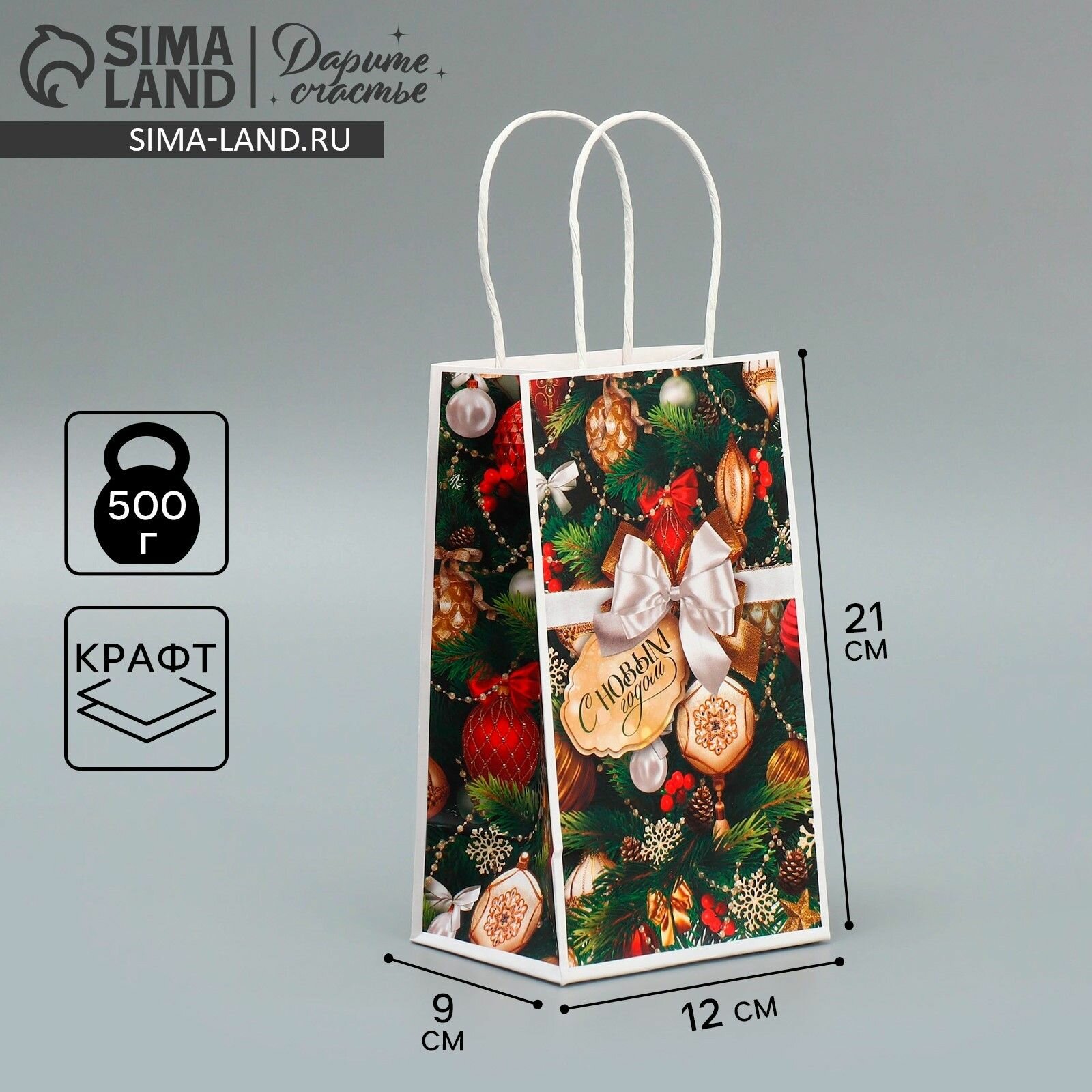Купить Пакет подарочный новогодний крафтовый Игрушки , 12 х 21 х 9 см