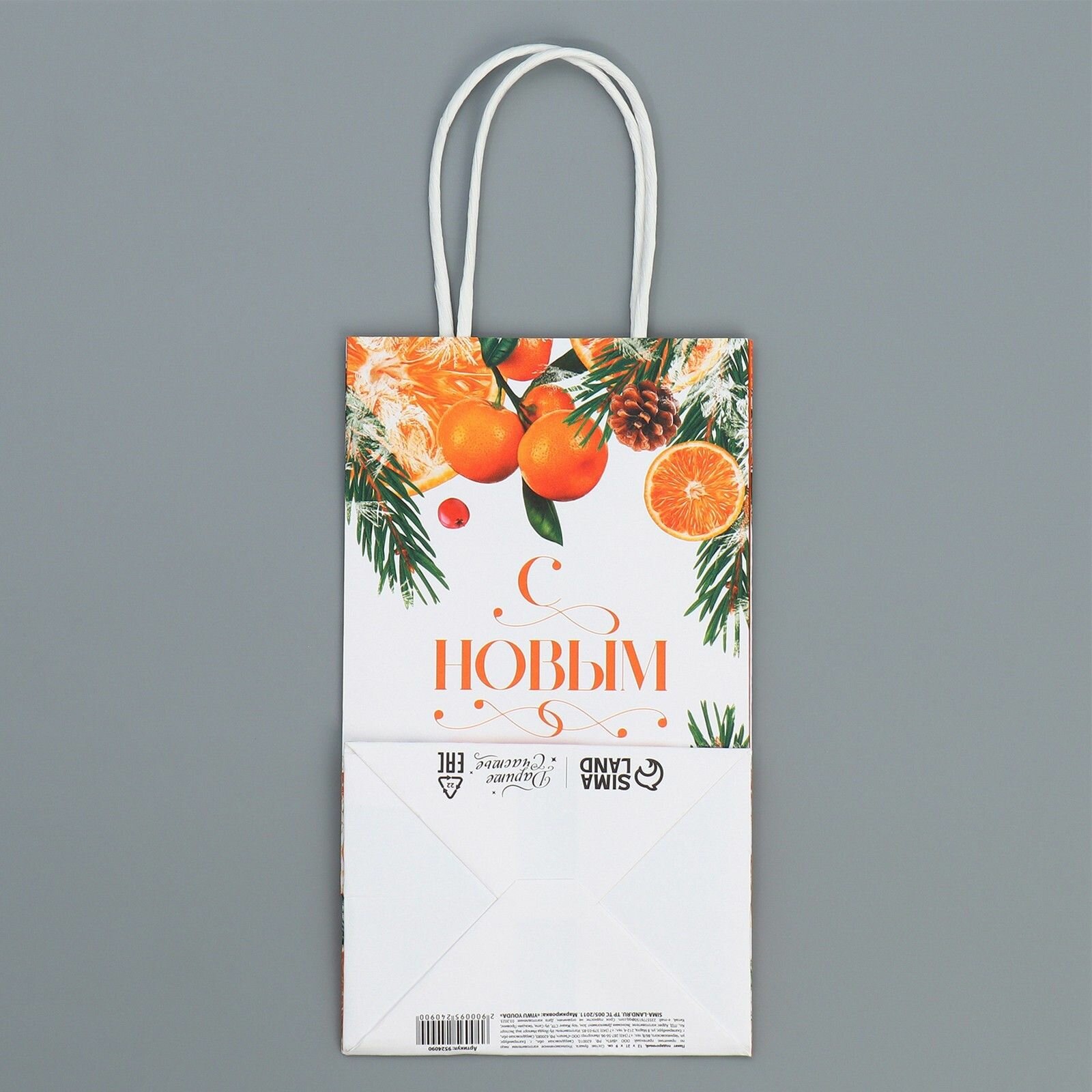 Купить Пакет подарочный новогодний крафтовый Новогодний цитрус , 12 х 21 х 9 см
