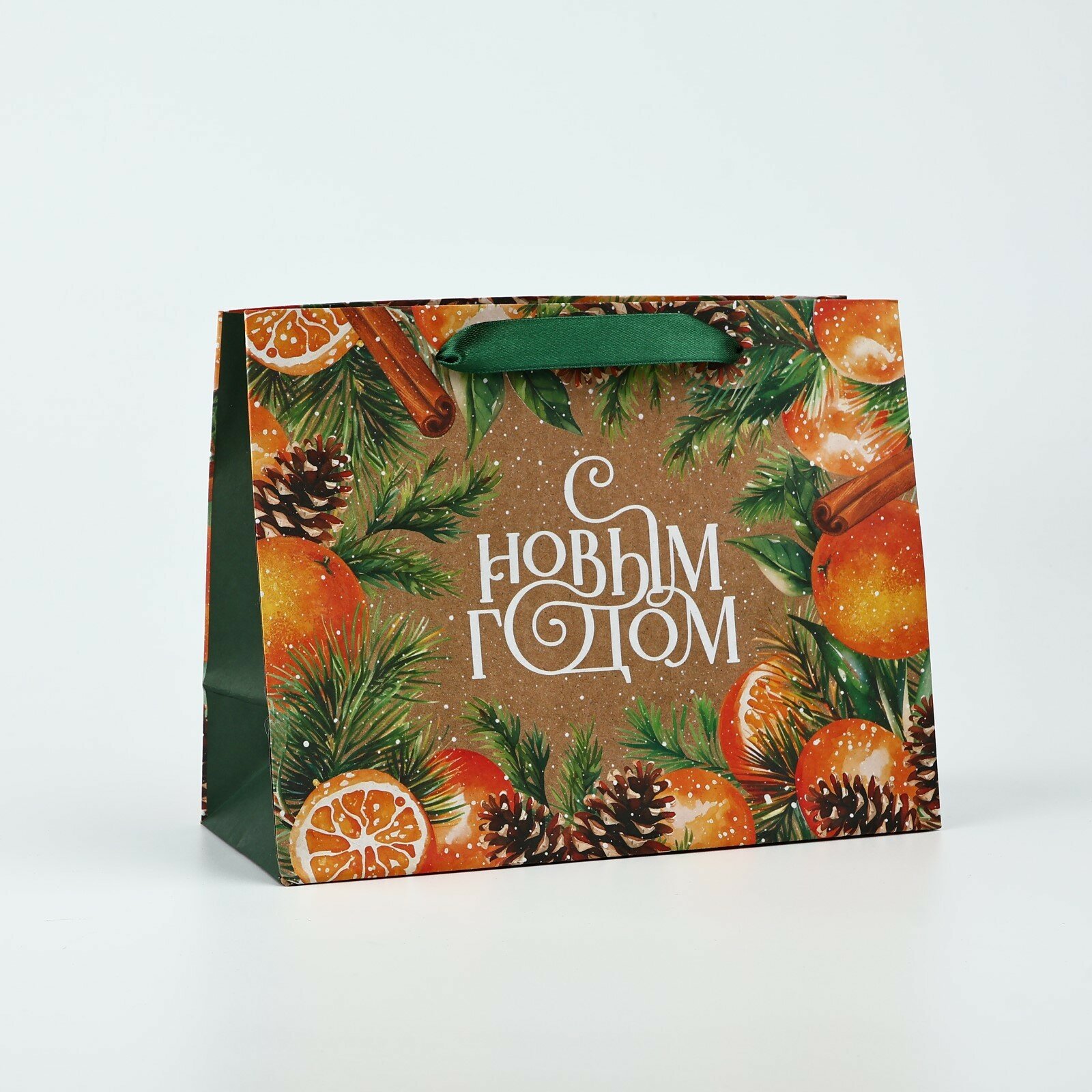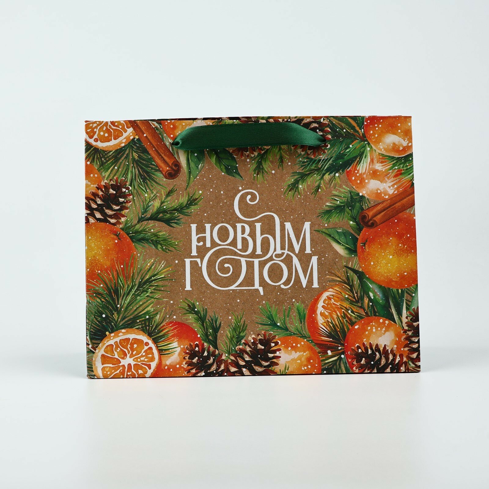 Пакет подарочный «С Новым годом», мандарины, MS 18 х 23 х 10 см , Новый год интересное: