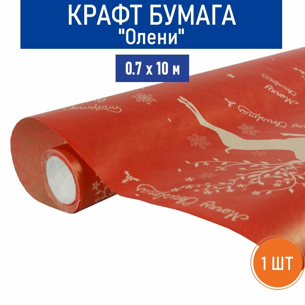 Бумага крафт "Олени" RussCarton, красный, 0.7х10 м, 1 упаковка. интересное: