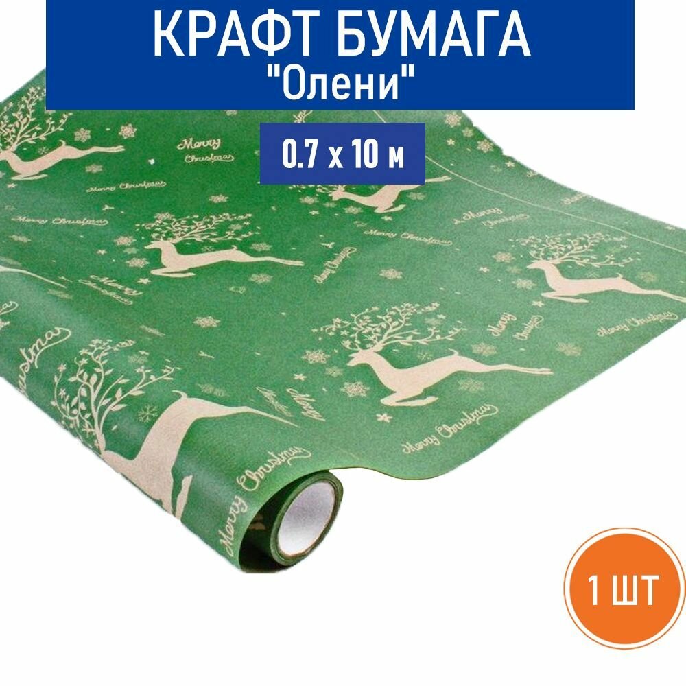 Бумага крафт "Олени" RussCarton, зеленый, 0.7х10 м, 1 шт в упаковке. интересное: