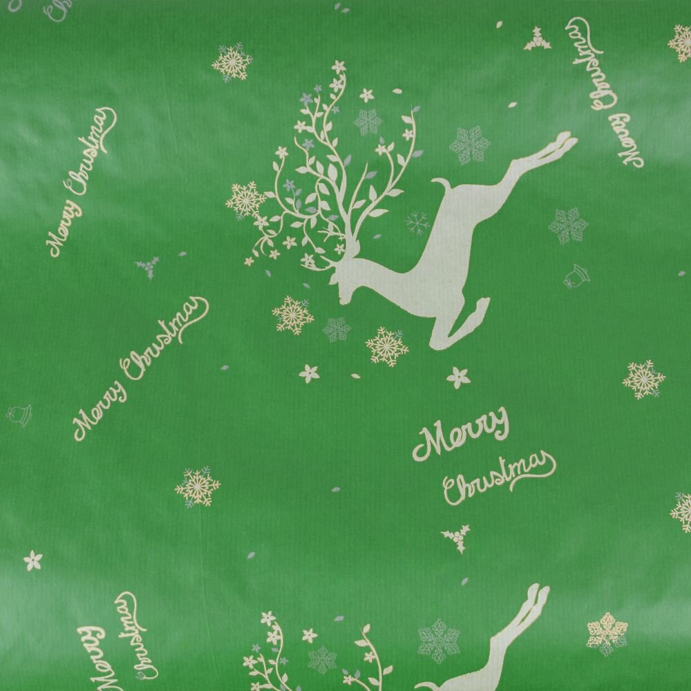 Купить Бумага крафт "Олени" RussCarton, зеленый, 0.7х10 м, 1 шт в упаковке.