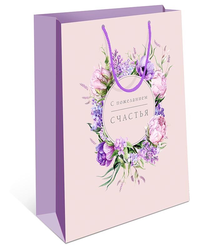Пакет подарочный Арт и Дизайн "Цветы", бумага, 33 см х 42 см х 10 см, фиолетовый