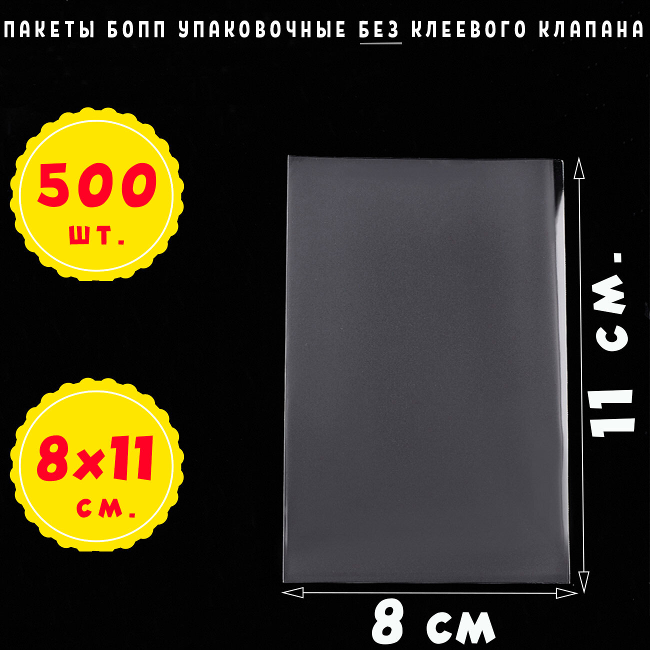 Купить 500 пакетов 8х11 см бопп прозрачных без клеевого клапана для упаковки