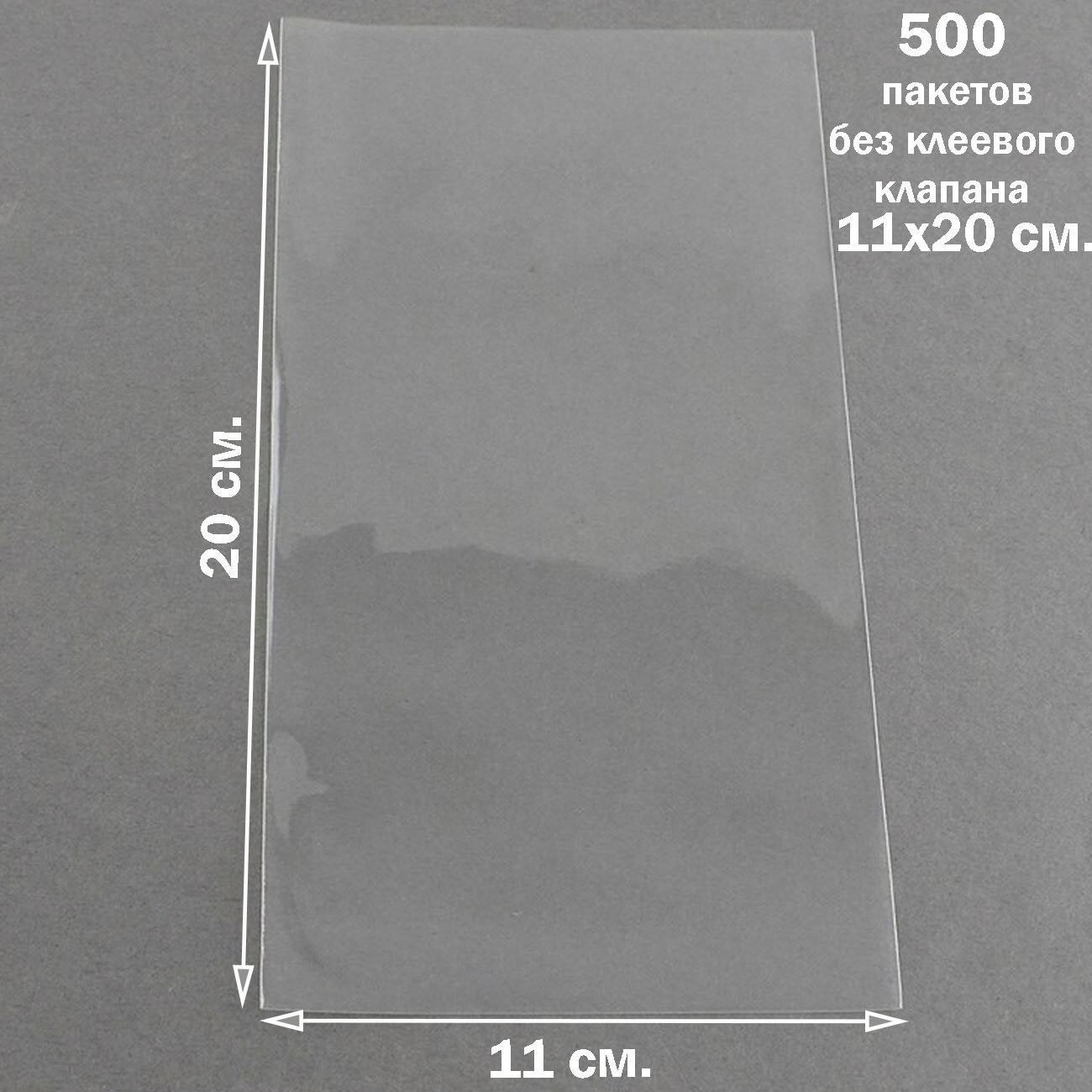 Купить 500 пакетов 11х20 см бопп прозрачных без клеевого клапана для упаковки