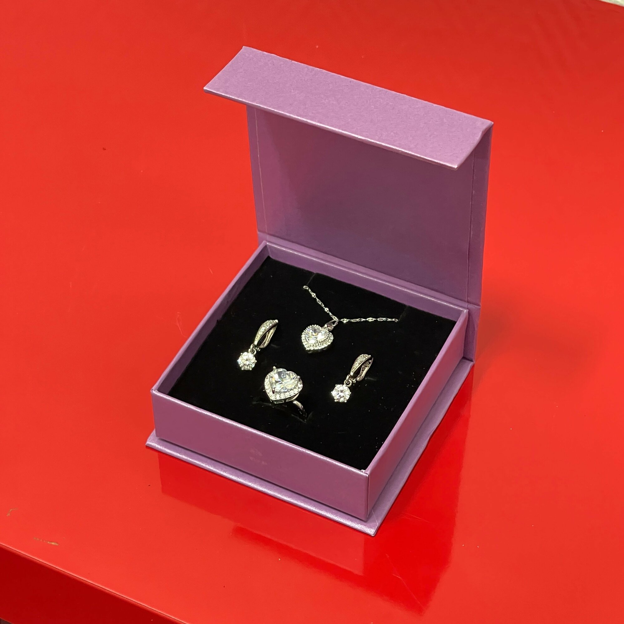 Купить Картонная коробочка для украшений на магните сиреневая для комплекта украшений, 9х9 см