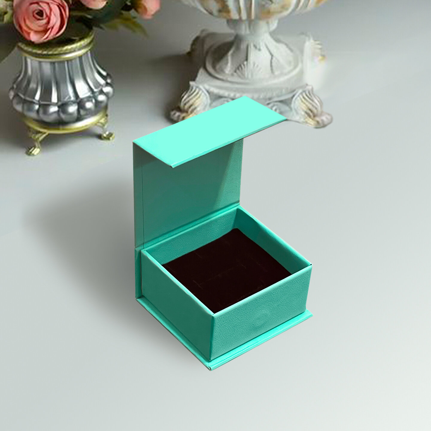 Картонная коробочка для украшений на магните бирюзовая для комплекта украшений, 9х9 см