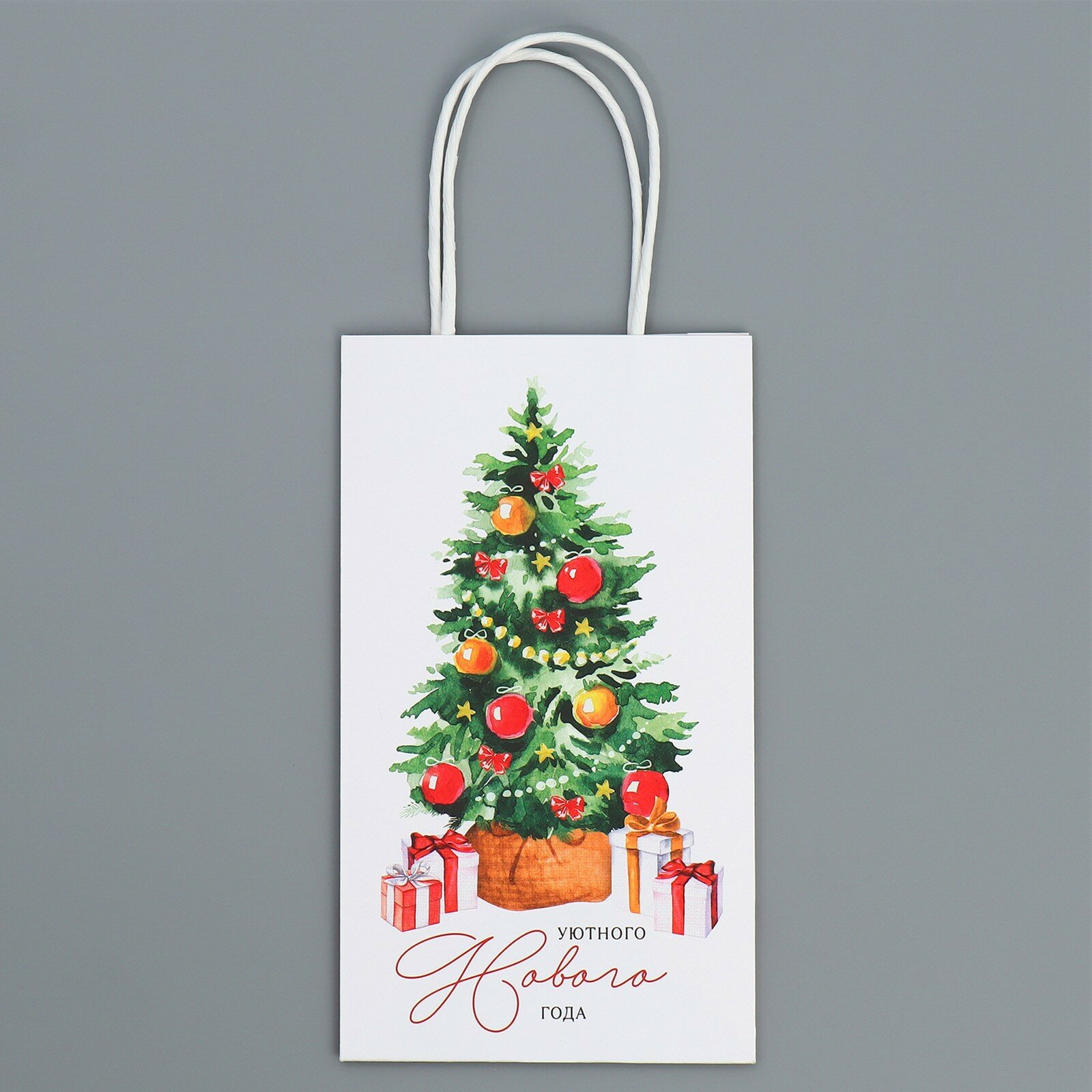 Купить Пакет подарочный новогодний «Уют в доме», 12 х 21 х 9 см, крафтовый, для упаковки подарка на Новый год