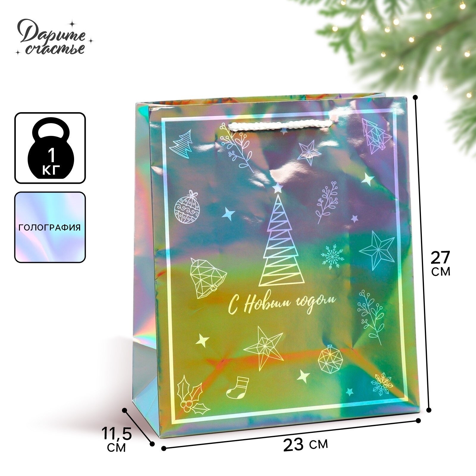 Купить Подарочный пакет голографический «Подарочек», ML 23 х 27 х 11.5 см, для упаковки подарка на Новый год.