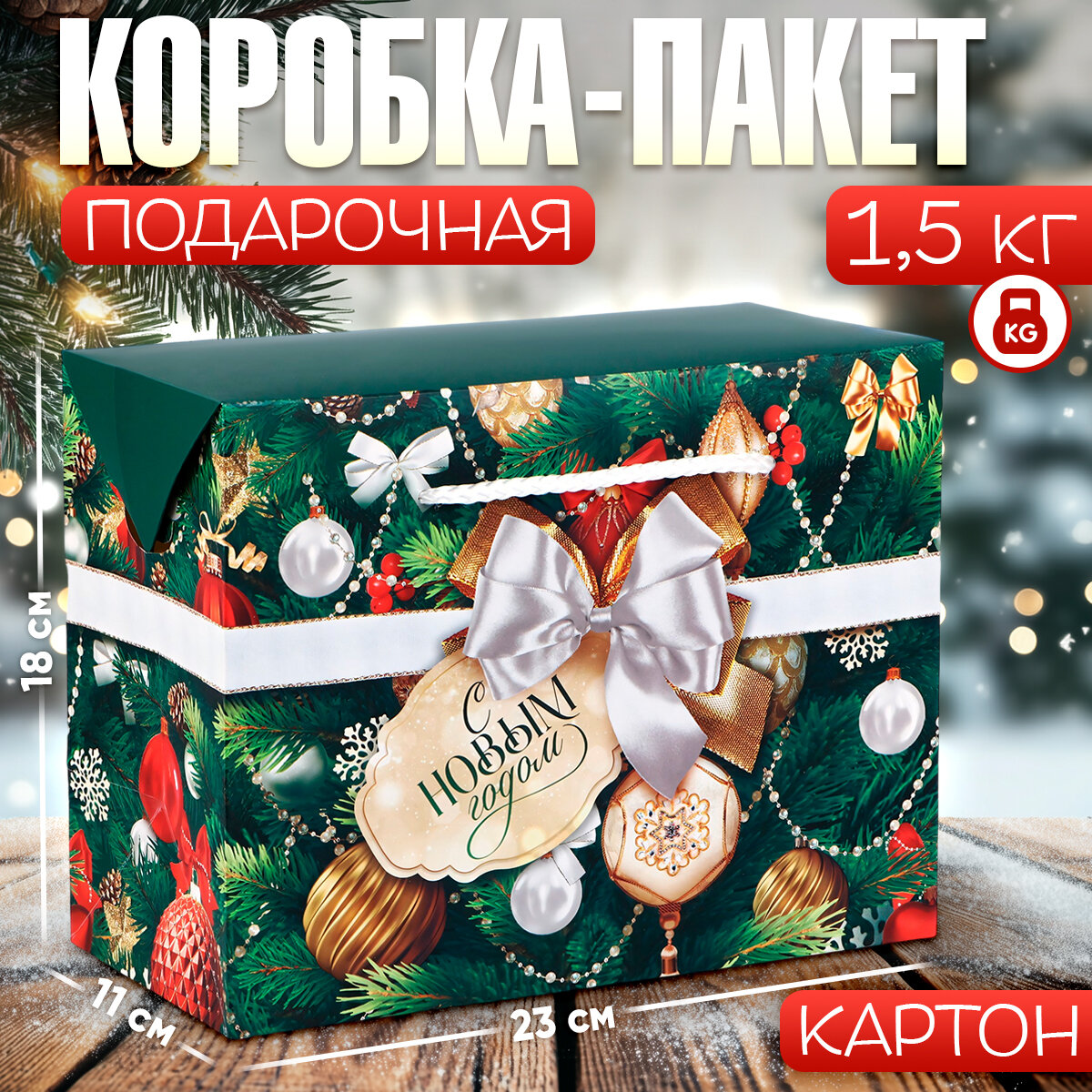 Пакет - коробка подарочная «Счастья в Новом году», 23 х 18 х 11 см, Новый год