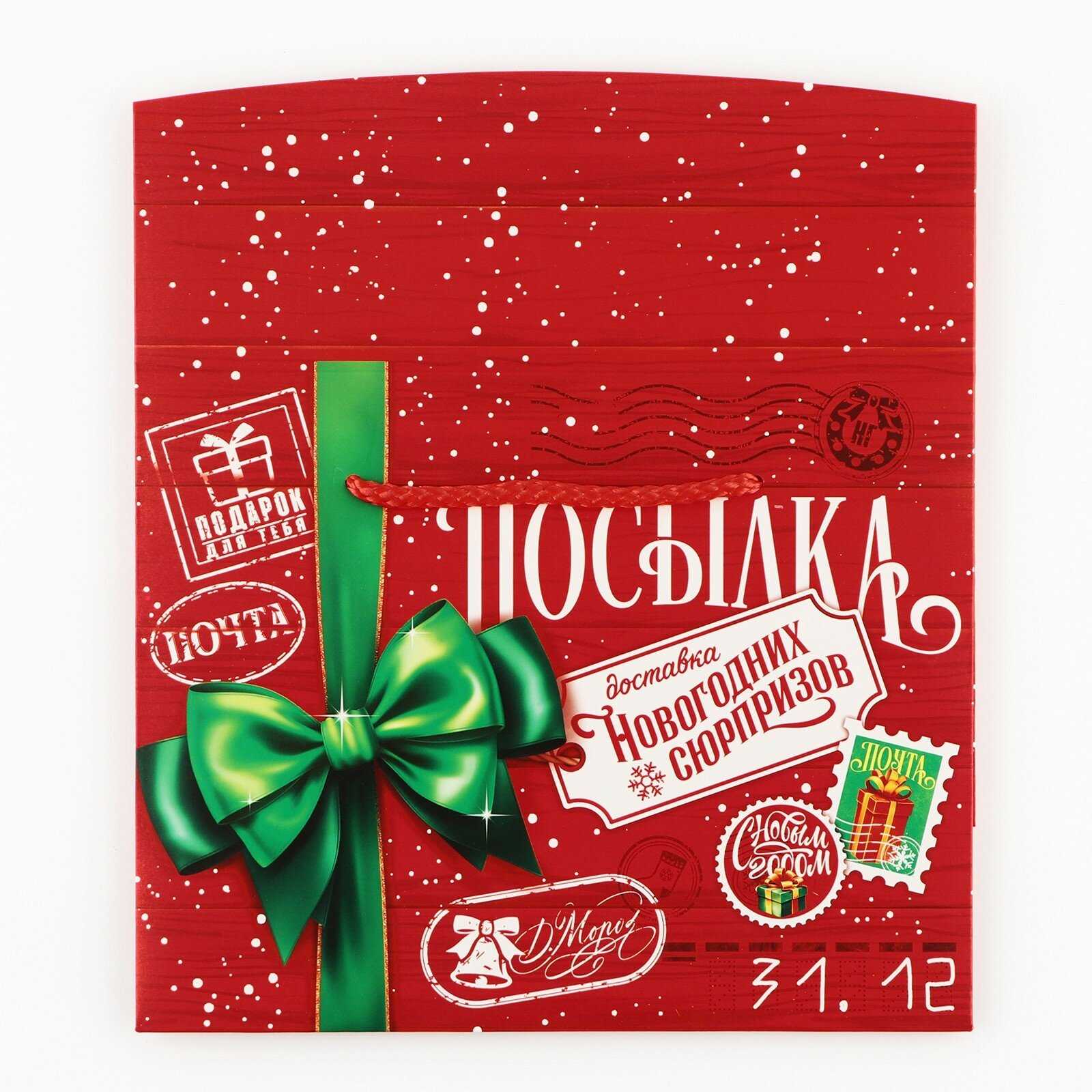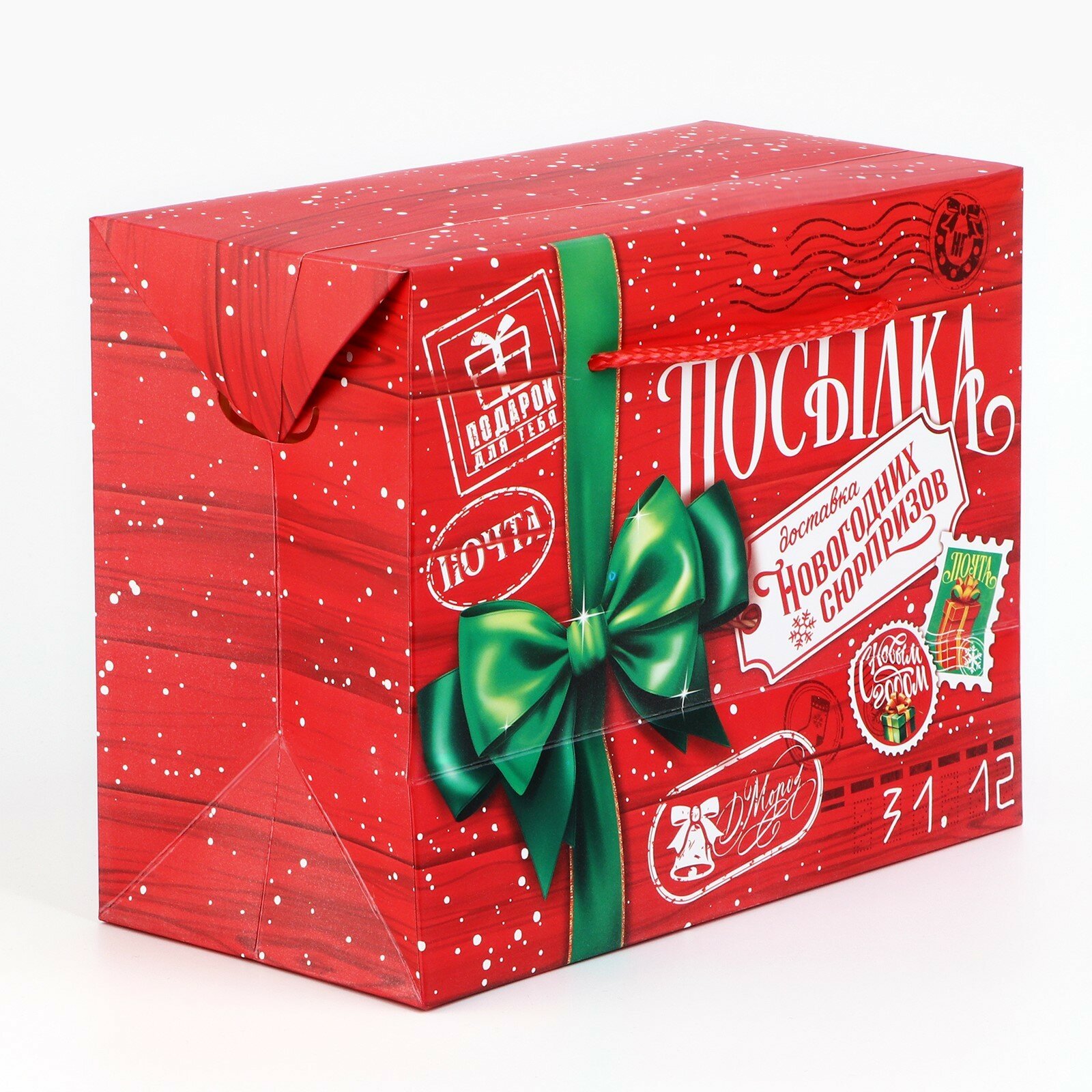 Купить Пакет - коробка подарочный, 23 х 18 х 11 см, красный «Новогодняя посылка», для упаковки подарка на Новый Год