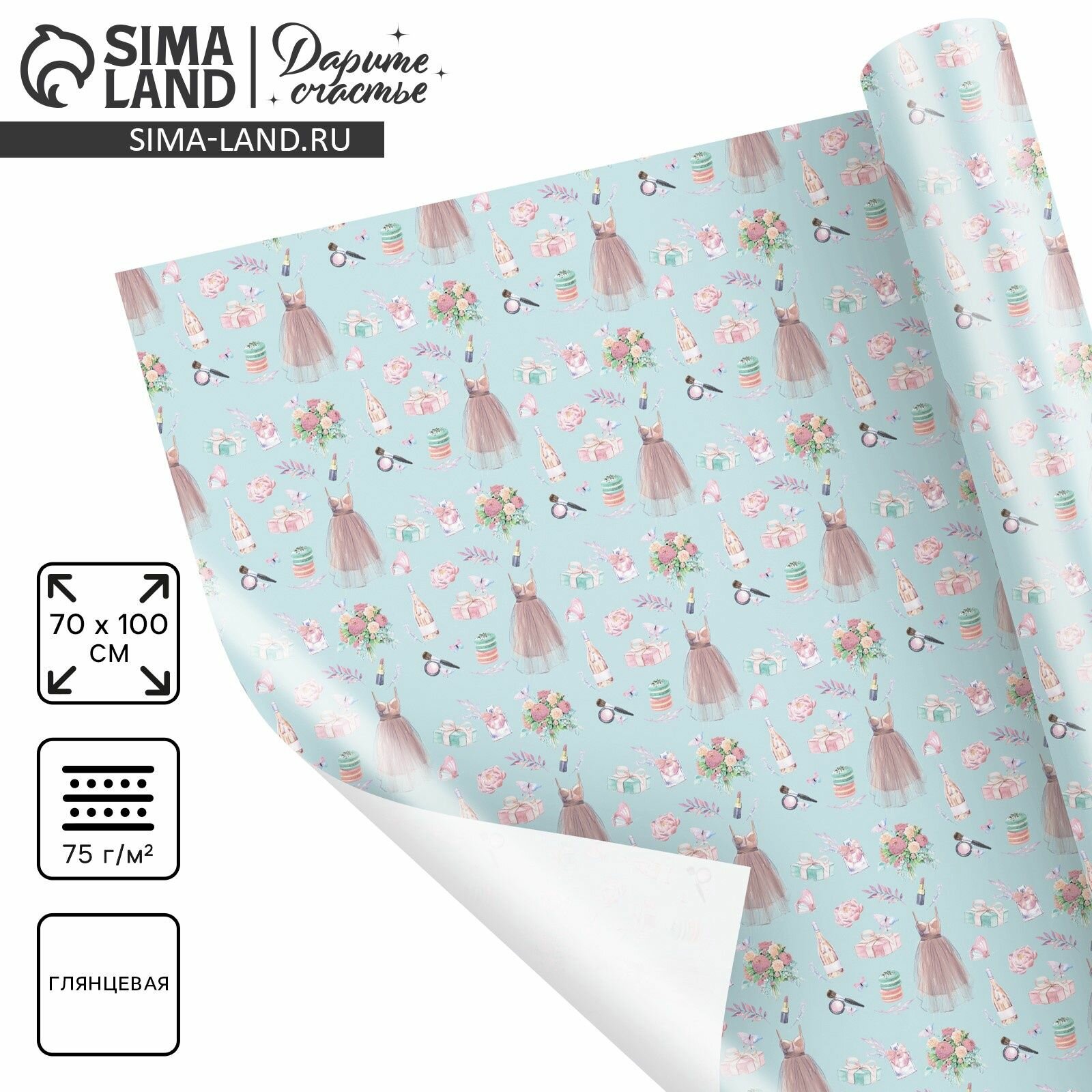 Бумага упаковочная глянцевая Моё счастье , 70 х 100 см