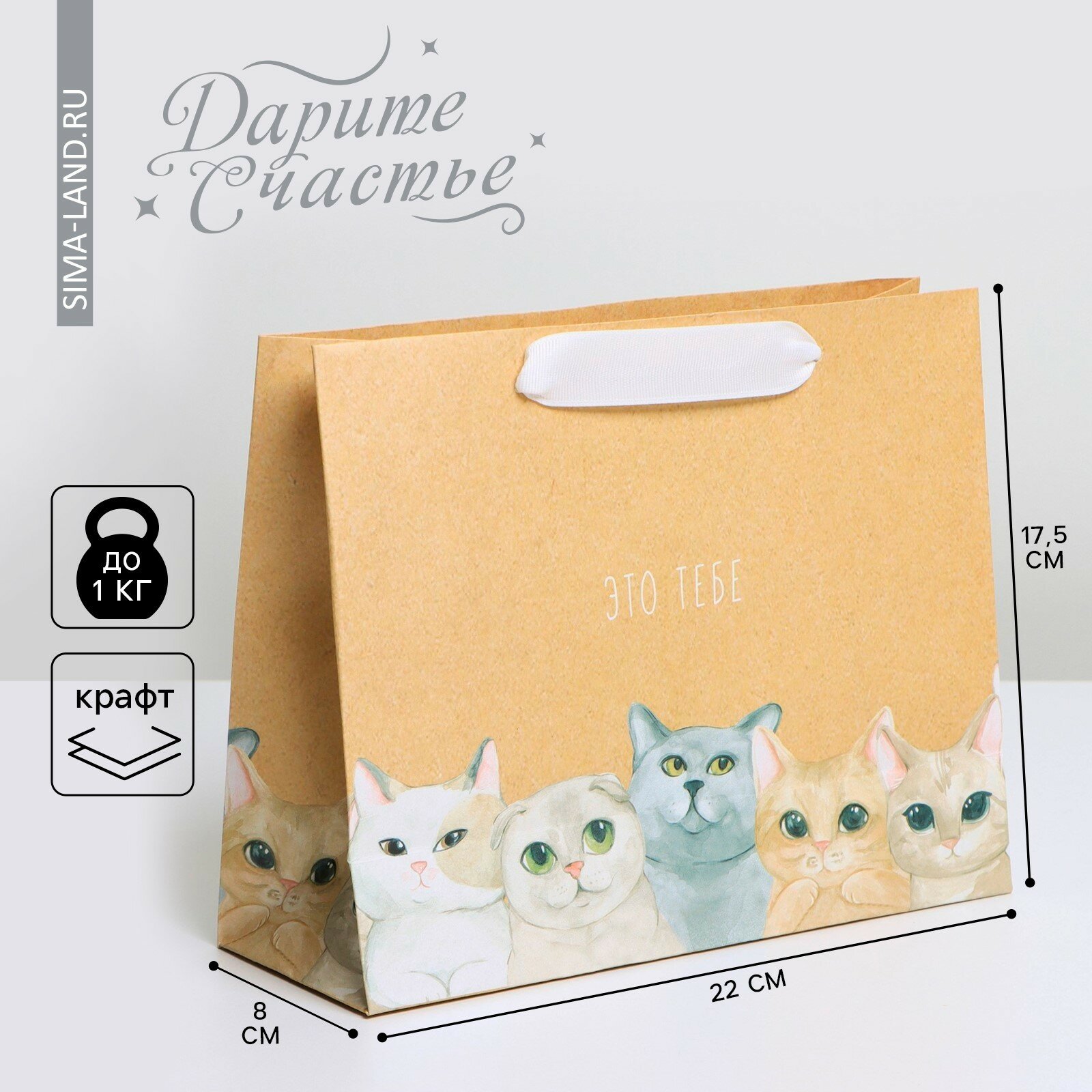 Купить Пакет крафтовый подарочный "Тебе", 22 х 17,5 х 8 см