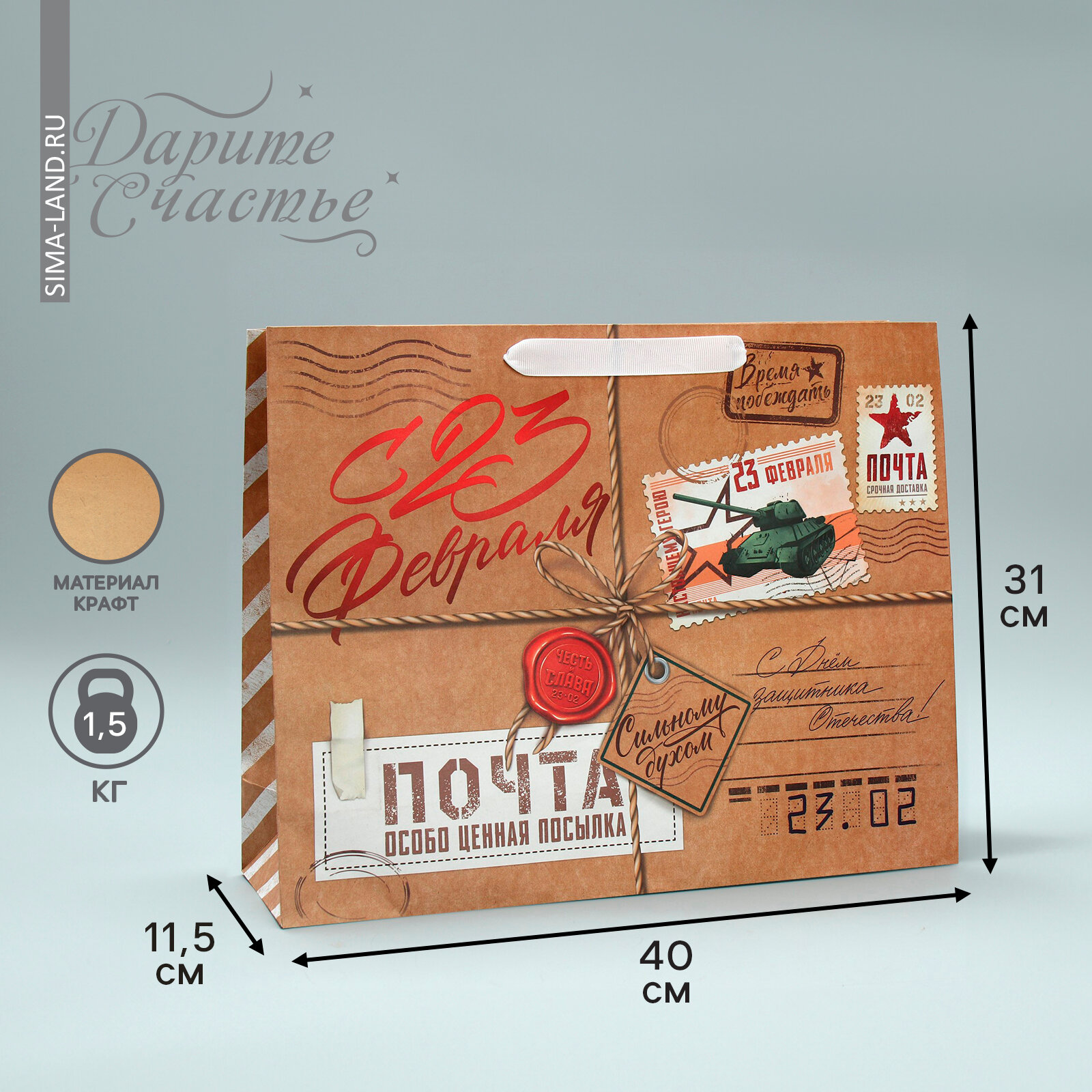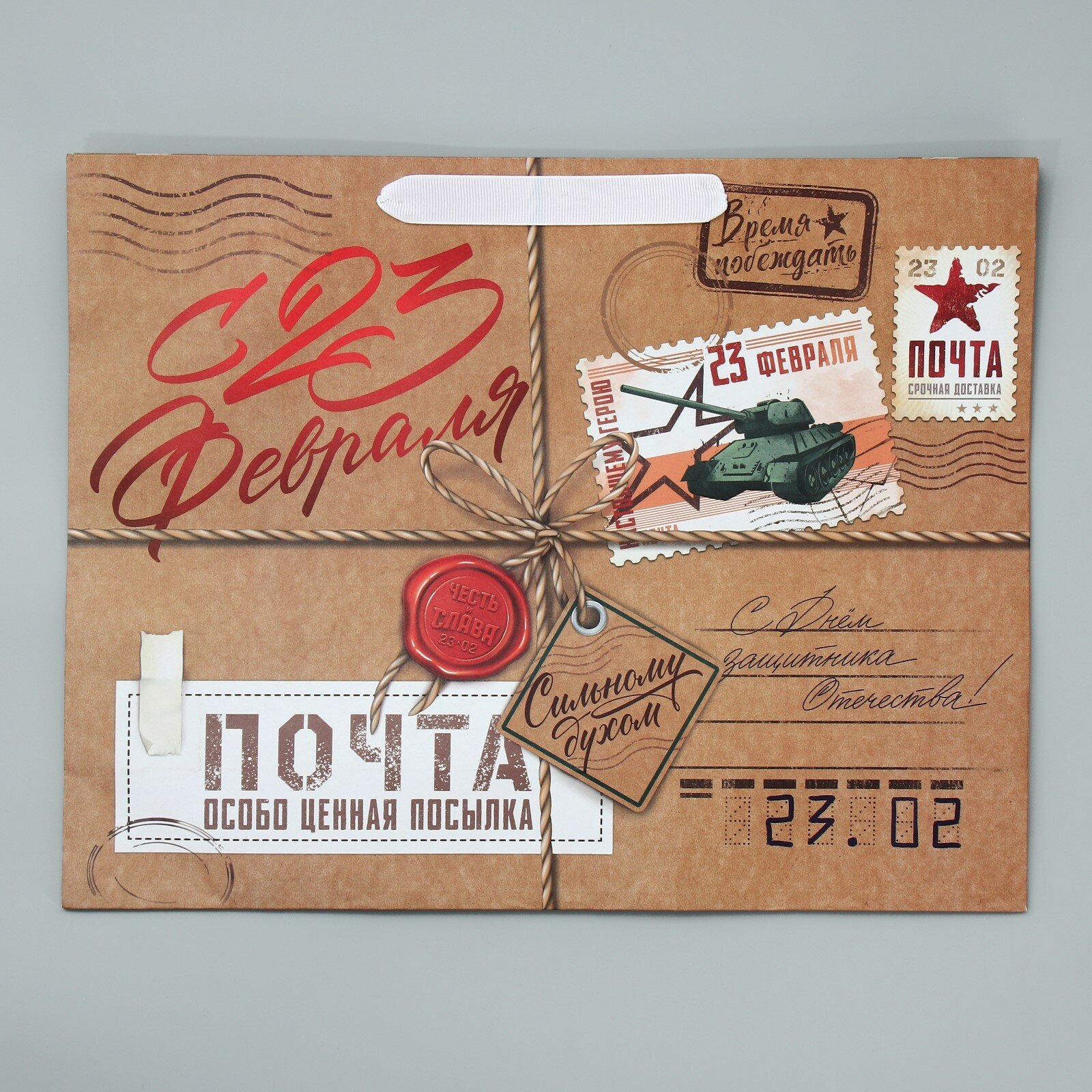Пакет крафтовый вертикальный "С днём защитника отечества!", MS 18 х 23 х 8 см