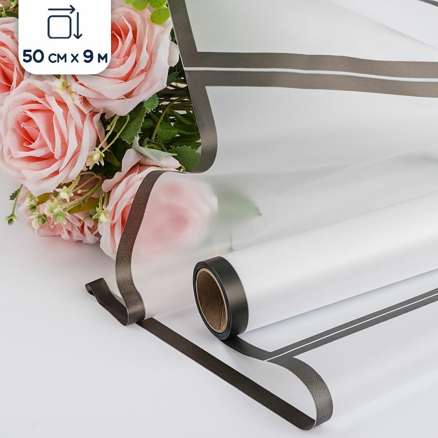 Купить Пленка упаковочная для цветов и подарков, прозрачная/черная, 50 см х 9 м