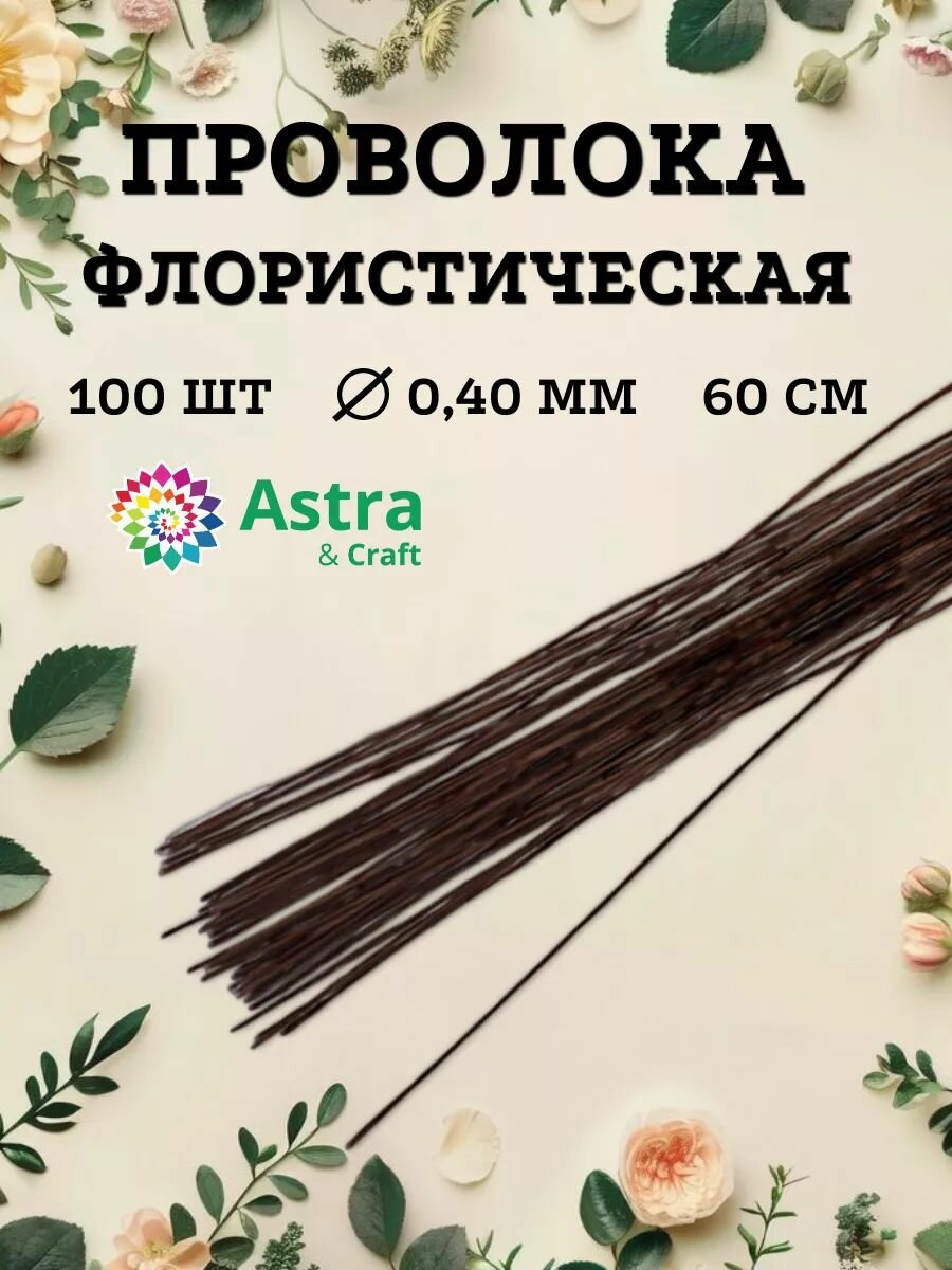 Проволока флористическая коричневая 0,4 мм*60 см, 100 шт, Astra&Craft интересное: