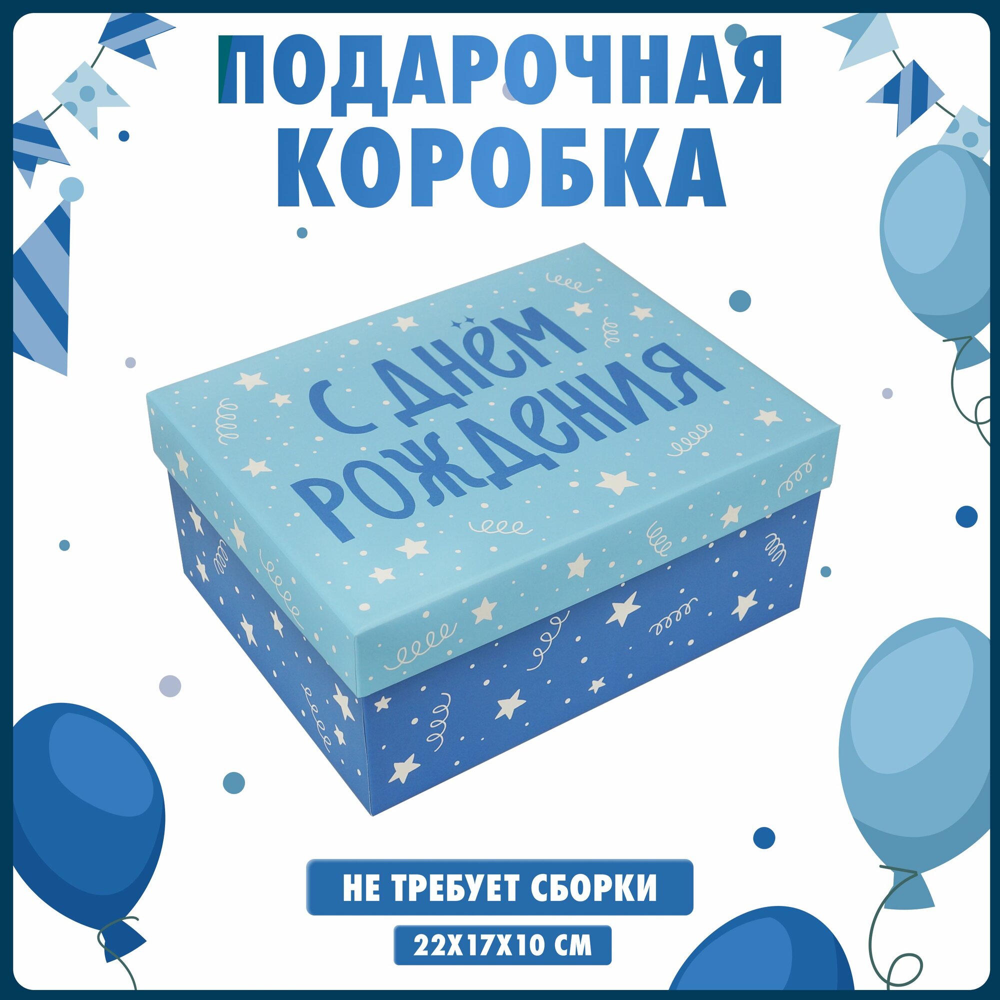 Коробка подарочная "С днем рождения", размер 22×17×10см, цвет голубой интересное: