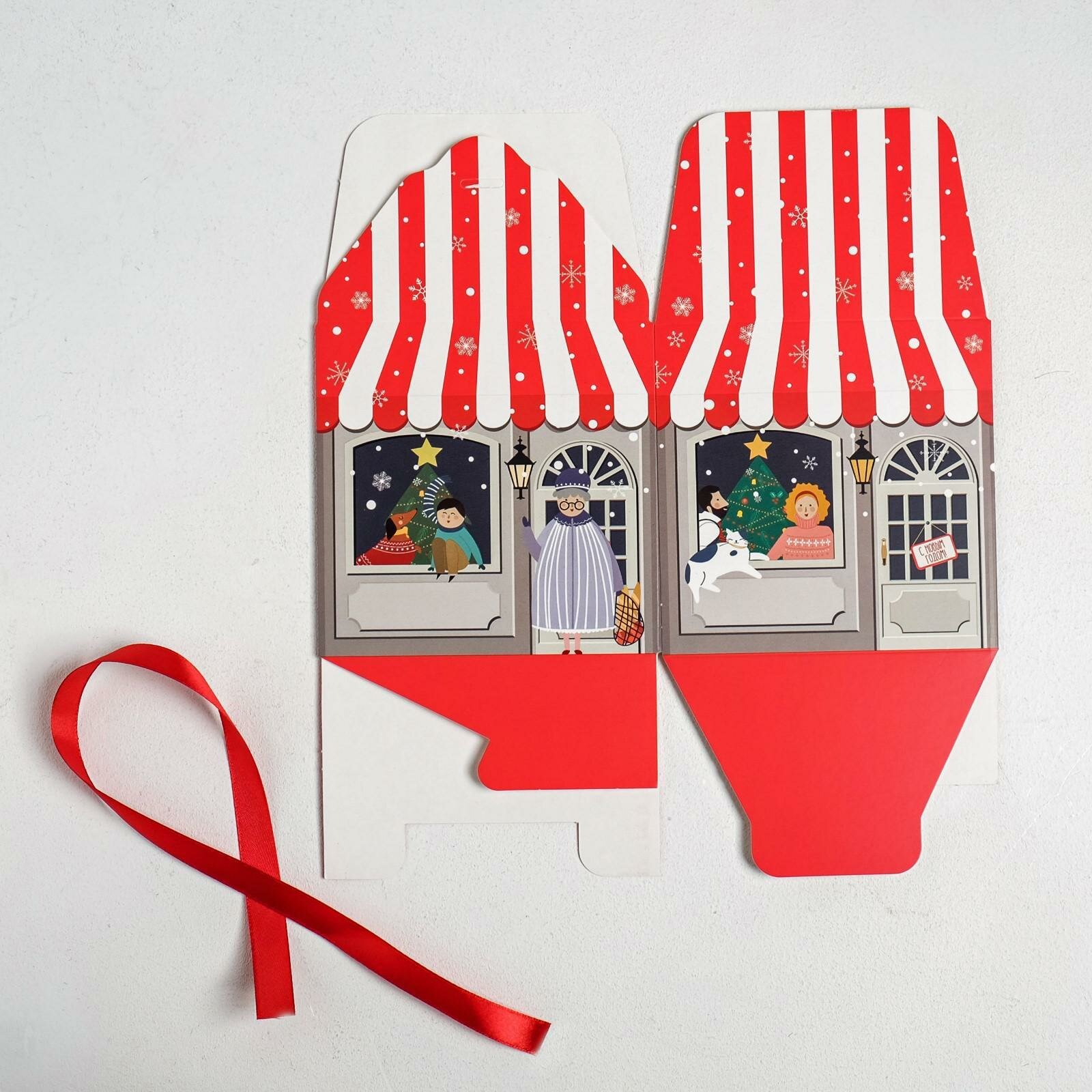 Подарочная коробка новогодняя новогодняя складная с 3D эффектом «Домик новогодний», 18 x 15 x 7.5 см, для упаковки подарка на Новый год.