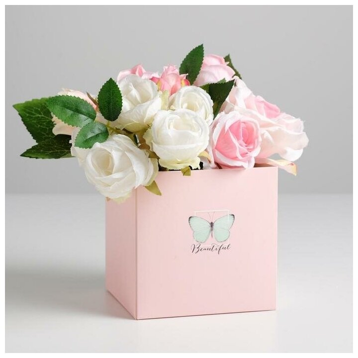 Купить Коробка подарочная для цветов с PVC крышкой, упаковка, «Beautiful», 12 х 12 х 12 см
