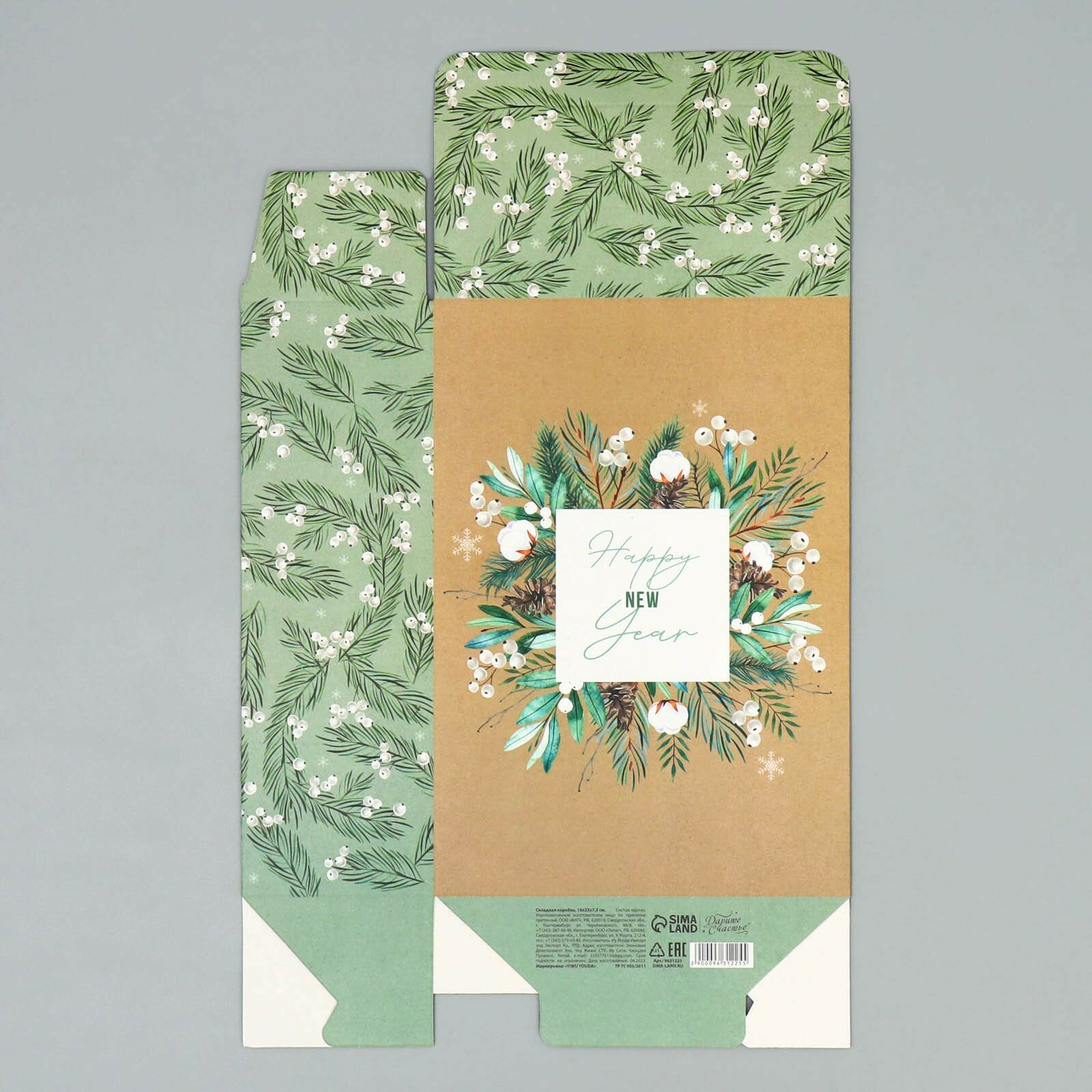 Подарочная коробка новогодняя новогодняя складная с 3D эффектом «Новогодний венок», 18 x 15 x 7.5 см, для упаковки подарка на Новый год.