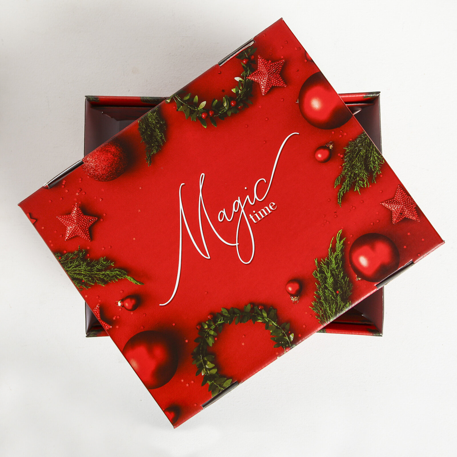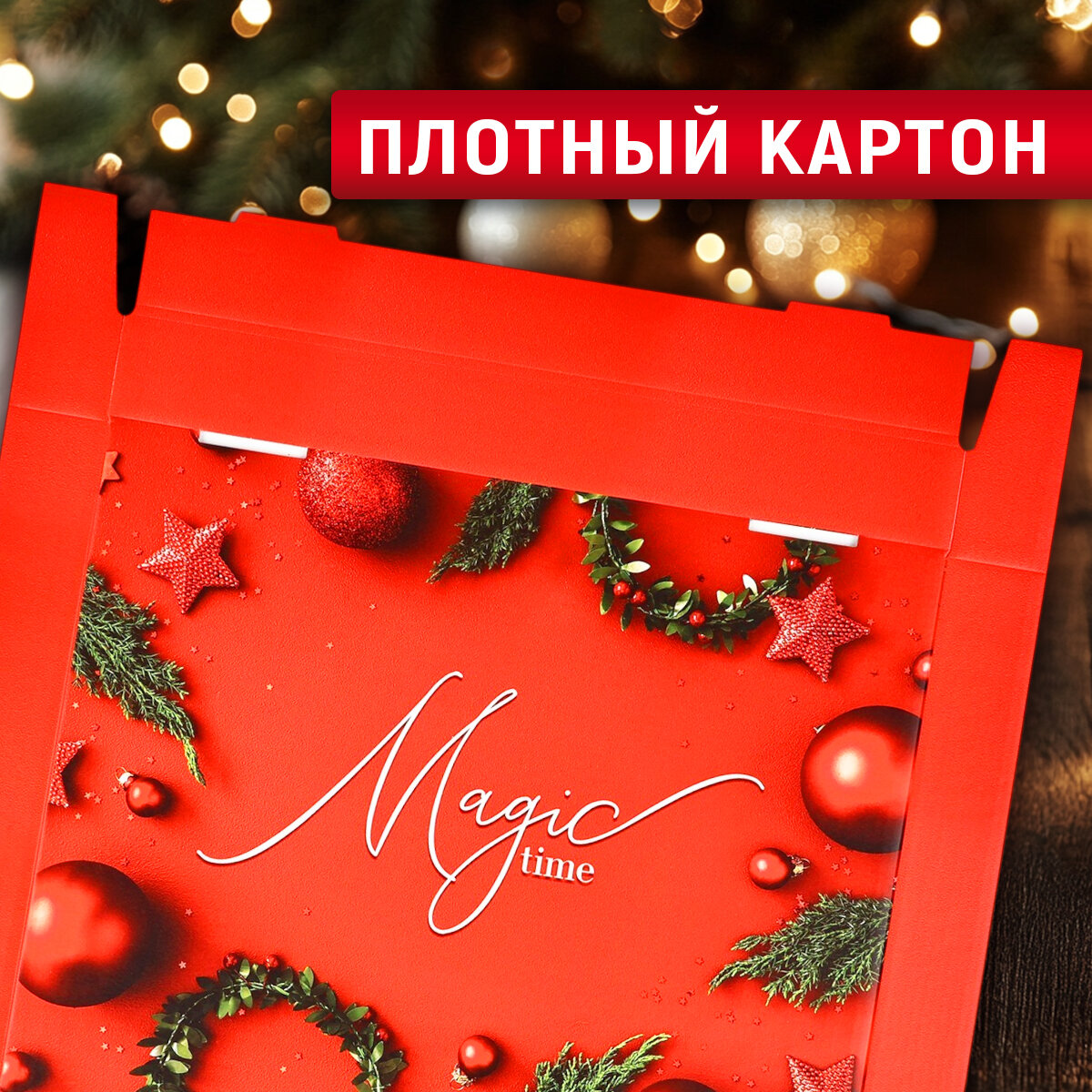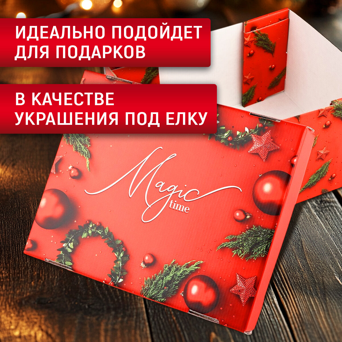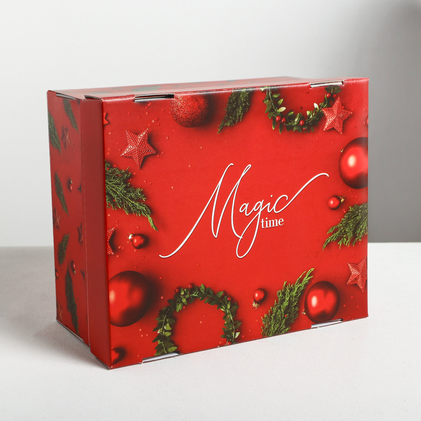 Коробка подарочная «Magic time», 31,2 х 25,6 х 16,1 см, красный, для упаковки подарка на Новый год интересное: