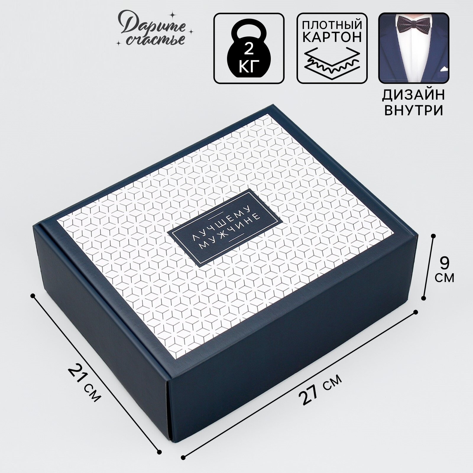 Купить Коробка подарочная, «Лучшему мужчине», 27 х 21 х 9 см, синий, плотный картон, с дизайном внутри