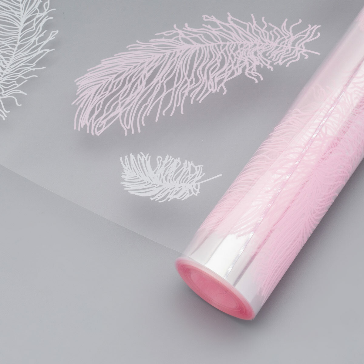 Купить Пленка для цветов и подарков прозрачная с рисунком 'Перышки' Айрис, 40 мкм, 60см*9м, белый, розовый жемчуг (105879)