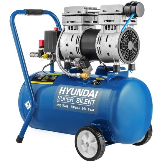 Компрессор HYUNDAI HYC 1824S, поршневой, безмасляный, бесшумный.