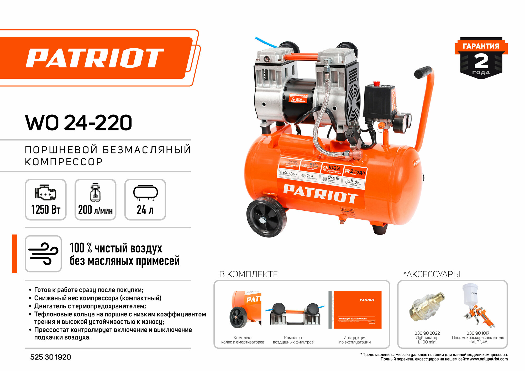 Компрессор PATRIOT WO 24-220 безмасляный 525301920