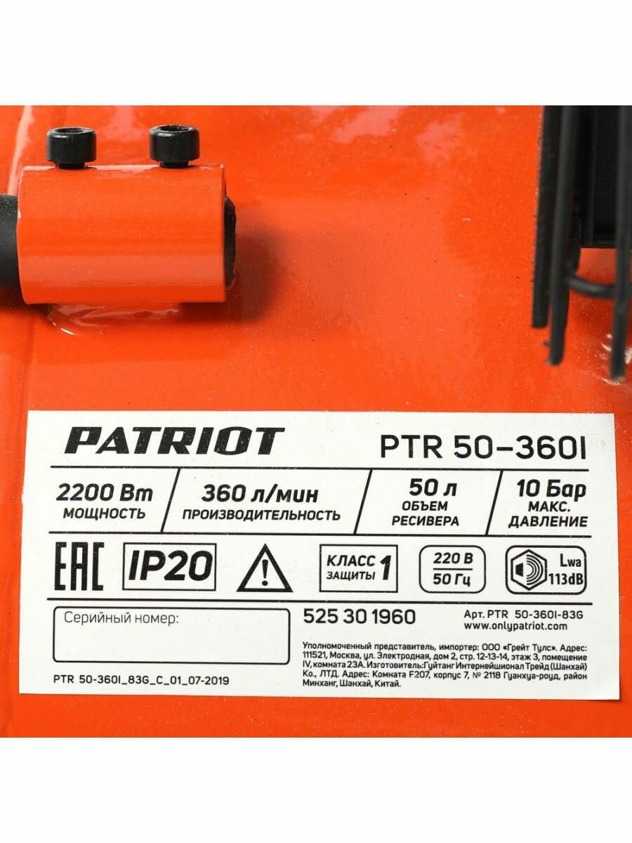 Поршневой ременной компрессор PATRIOT PTR 50-360I 525301960, шт PATRIOT