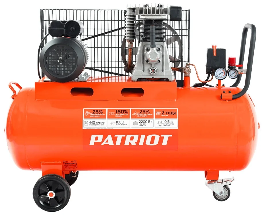 Компрессор поршневой ременной Patriot PTR 100-440I, 2200 Вт