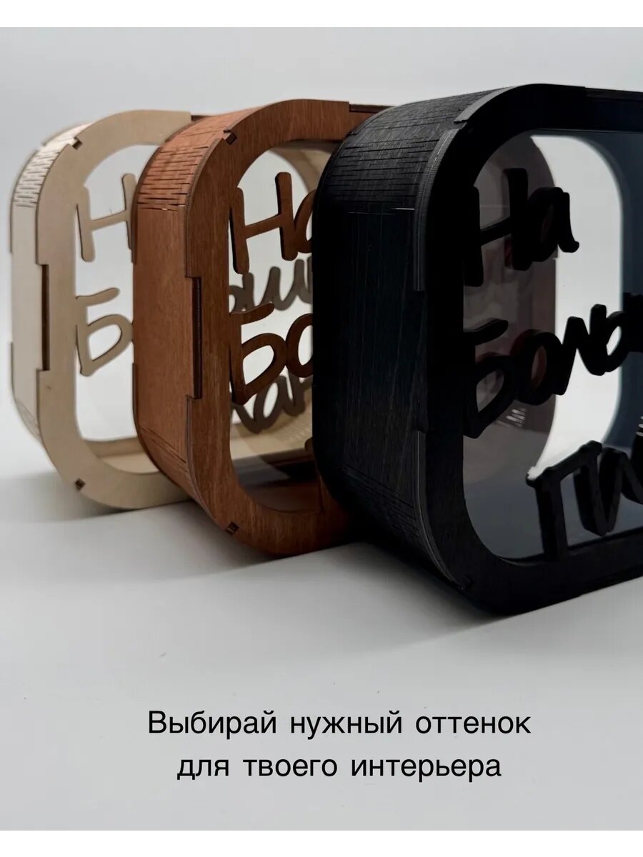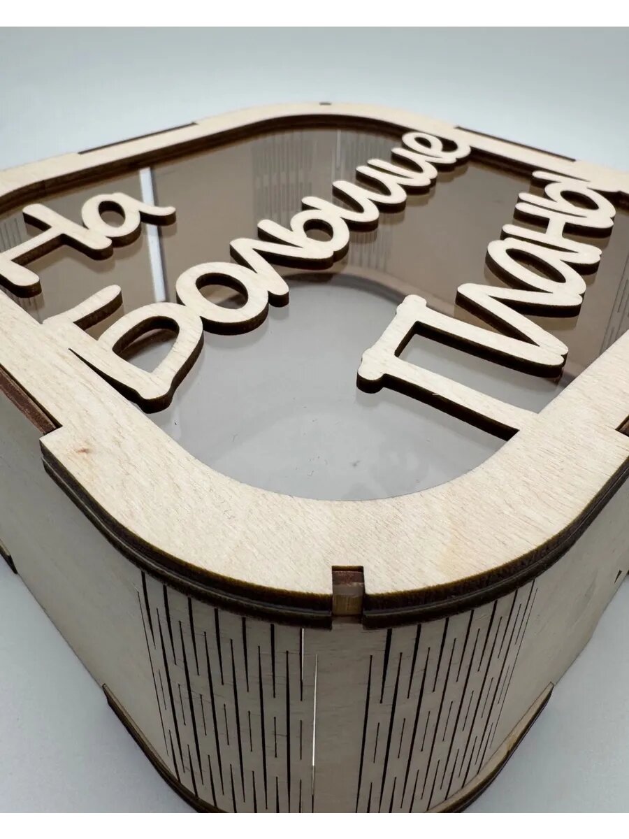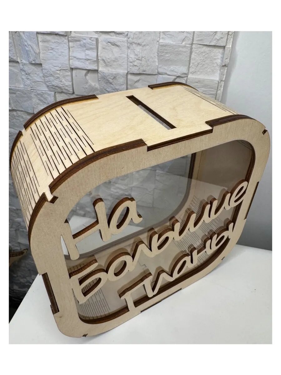 Копилка из фанеры для денег прозрачная 16*16*6 интересное: