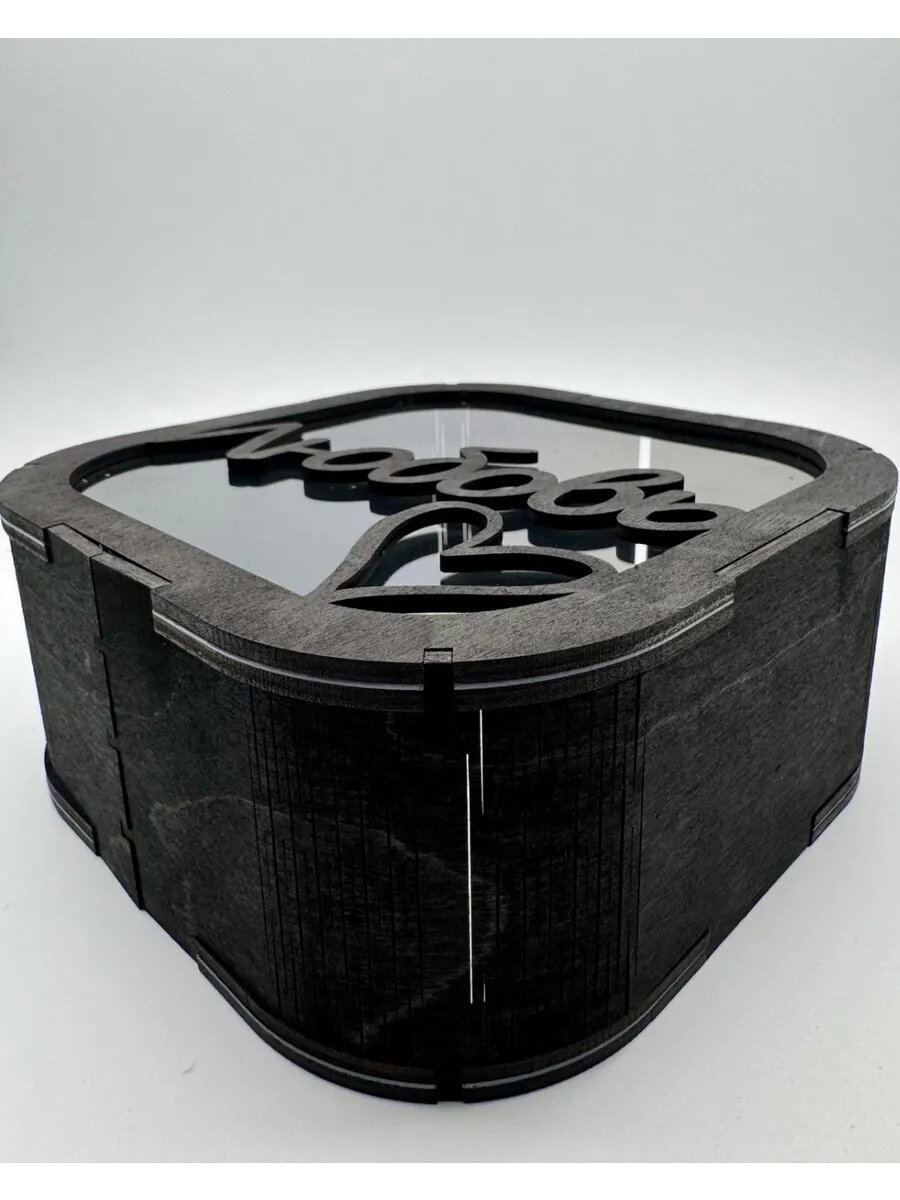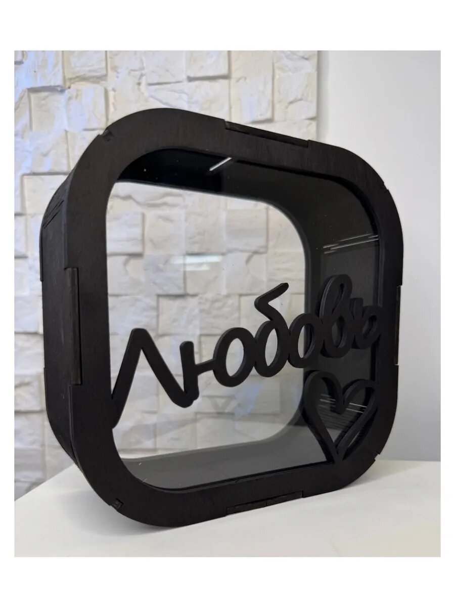 Копилка для денег деревянная прозрачная 16*16*6 интересное: