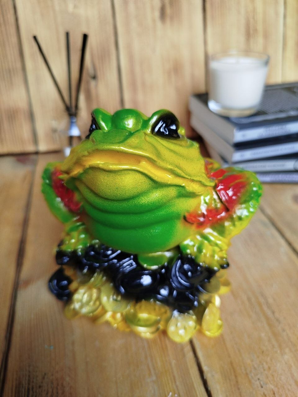 Копилка "Лягушка на деньгах", гипс, 15см, экологичный материал интересное:
