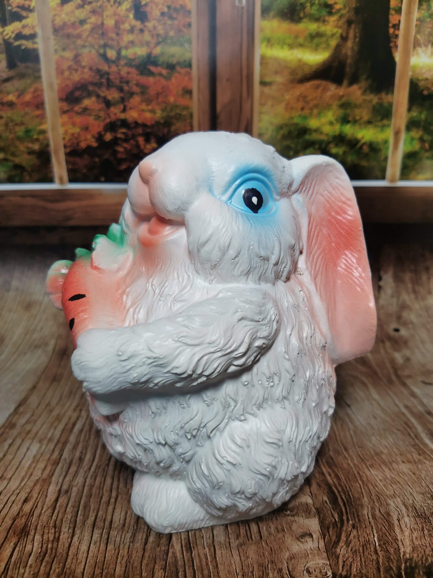 Копил "Заяц с морковкой", высота 18см, ширина 15см, гипс, ручная работа интересное: