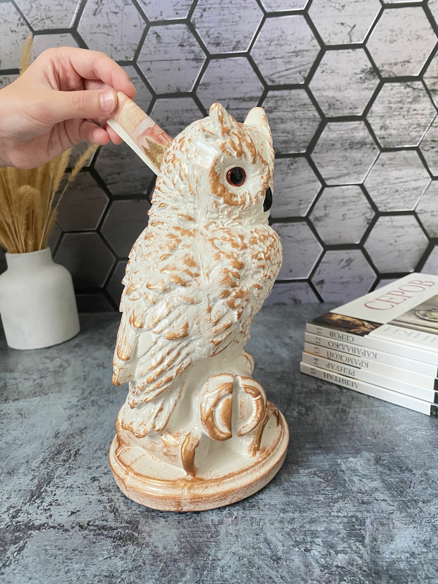 Детская копилка без клапана для денег, монет Сова, высота 22 см