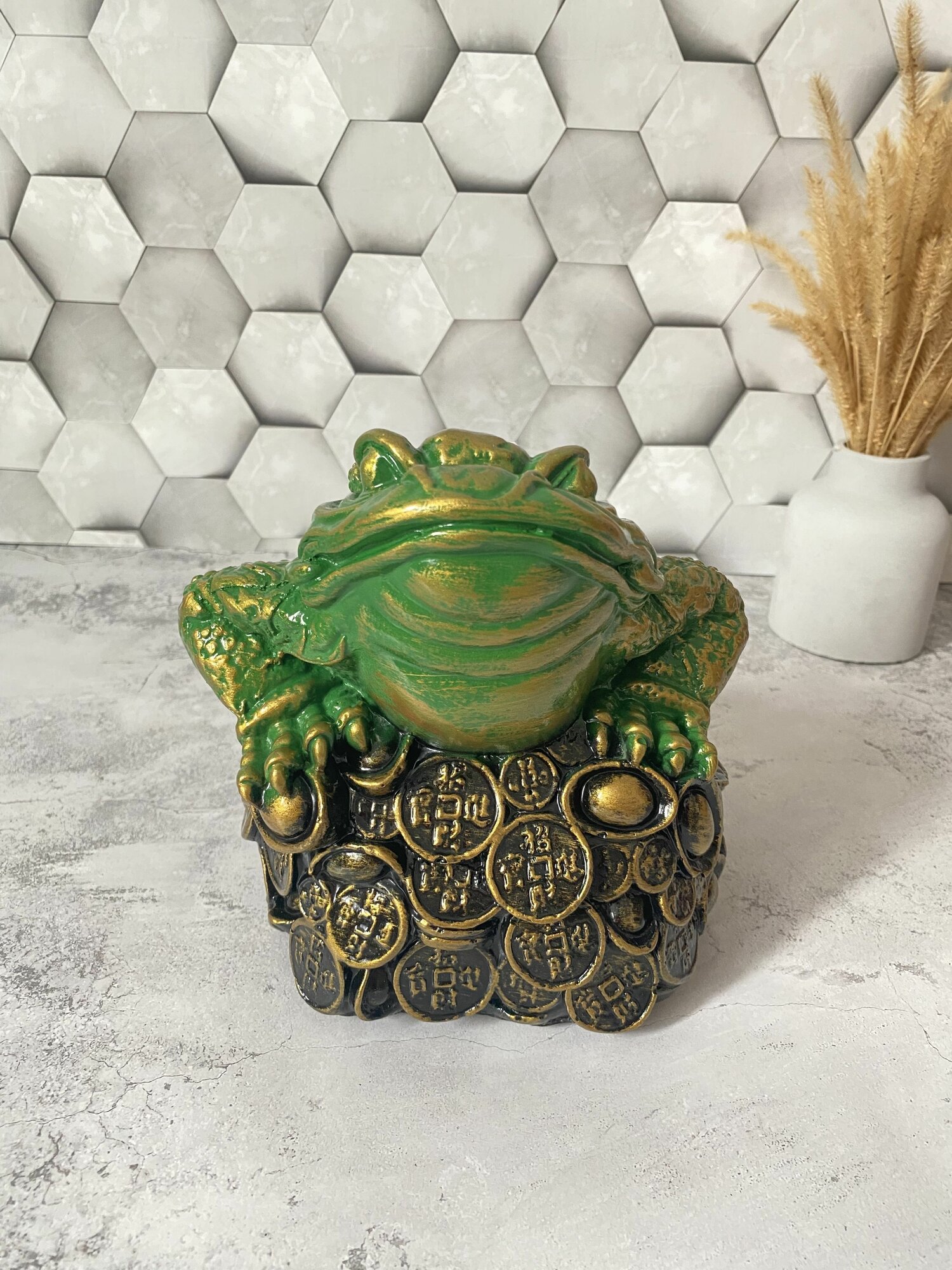 Большая копилка для денег Денежная Жаба на деньгах Фэн Шуй 20/18 см