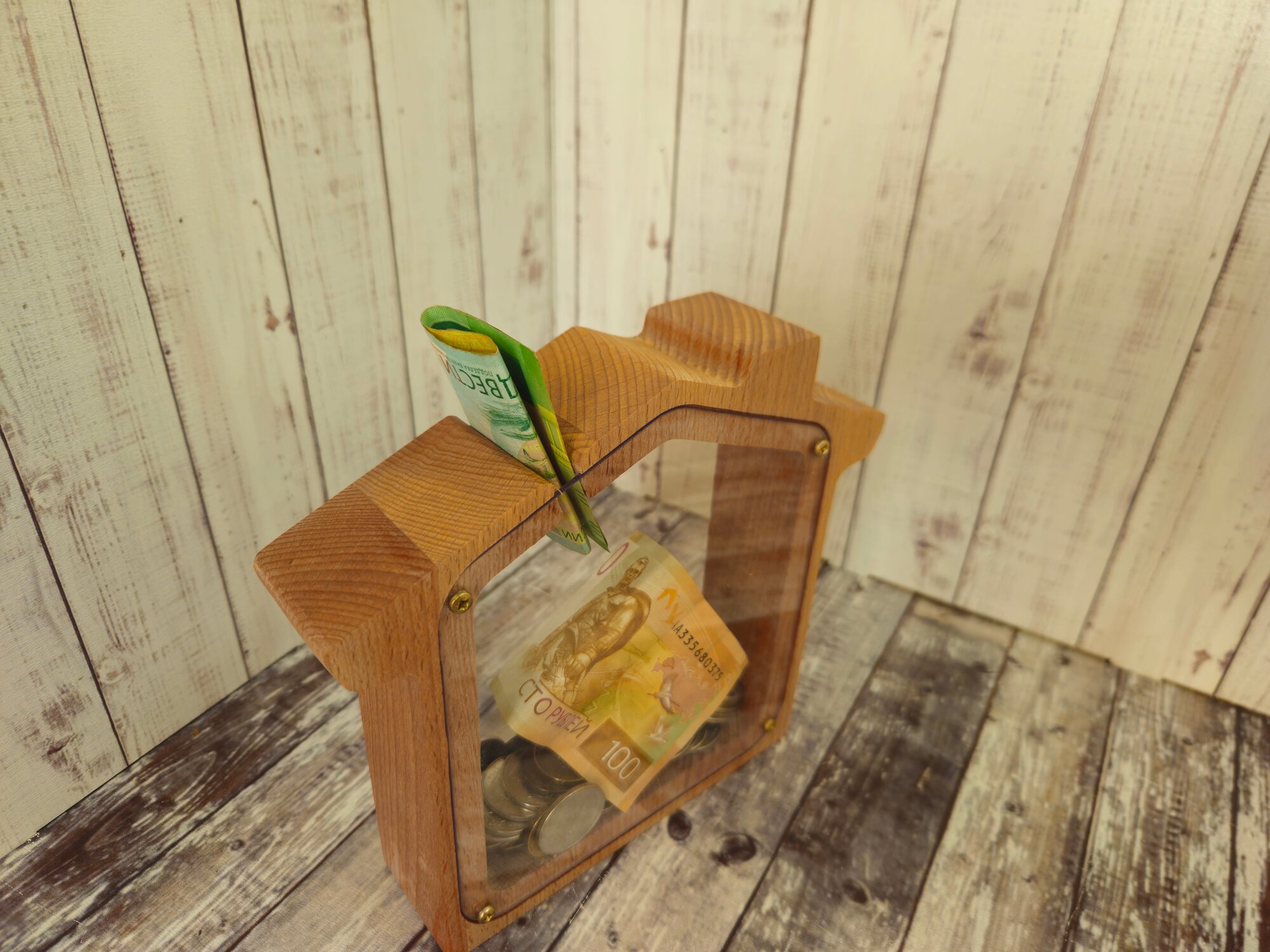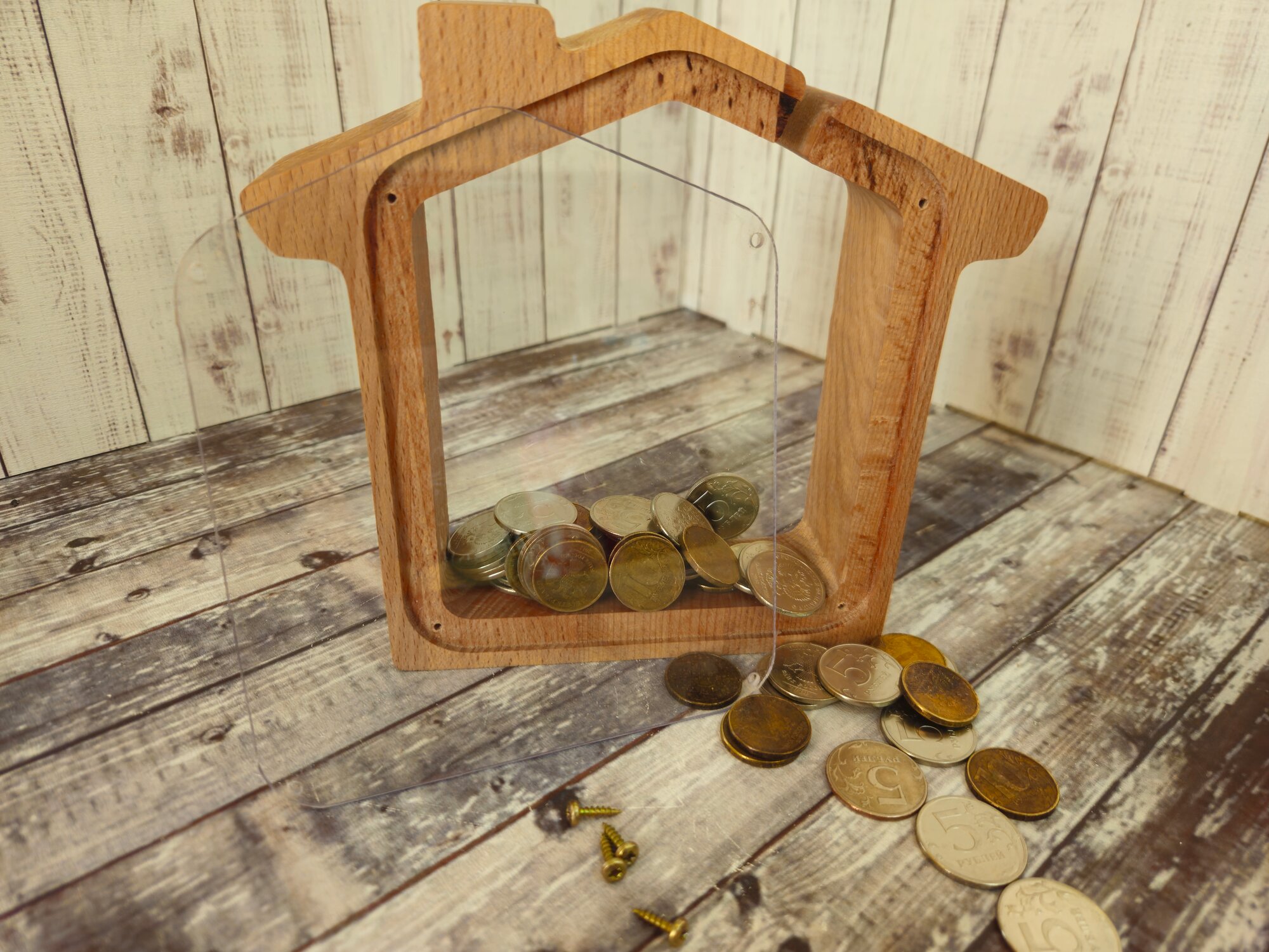 Копилка "Домик", массив бука, бук, ручная работа, размер 19x17x4 см интересное: