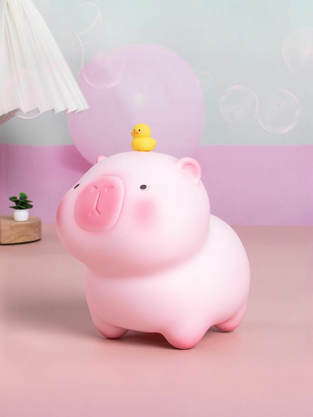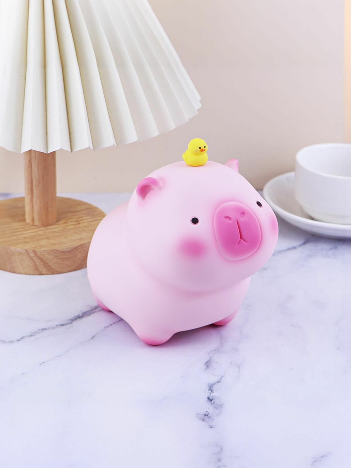 Купить Копилка для денег детская Капибара с утенком 14 см, розовая
