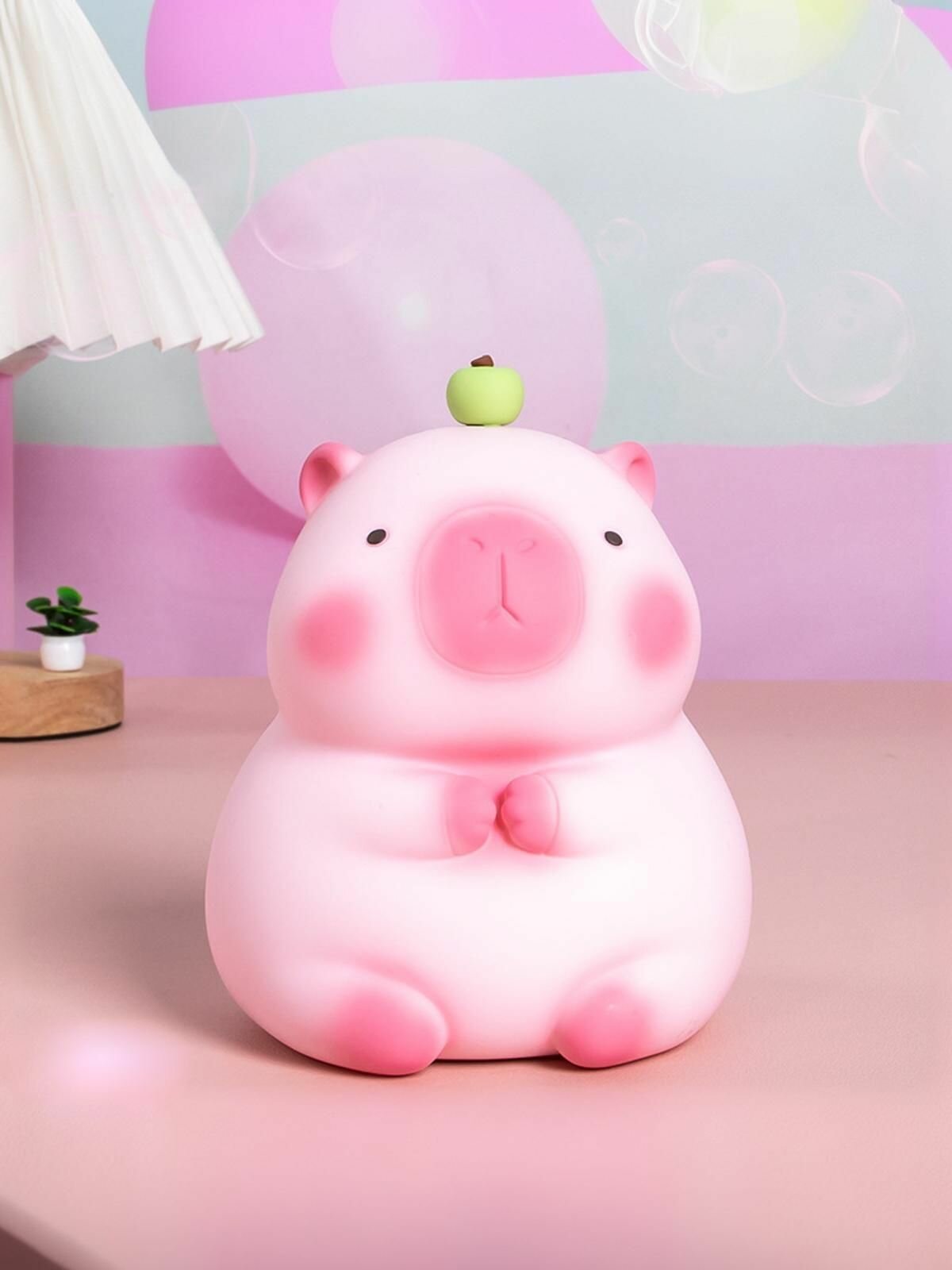 Купить Копилка для денег детская Капибара с яблоком 15 см, розовая