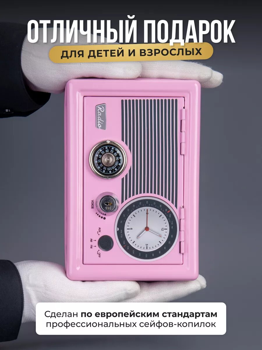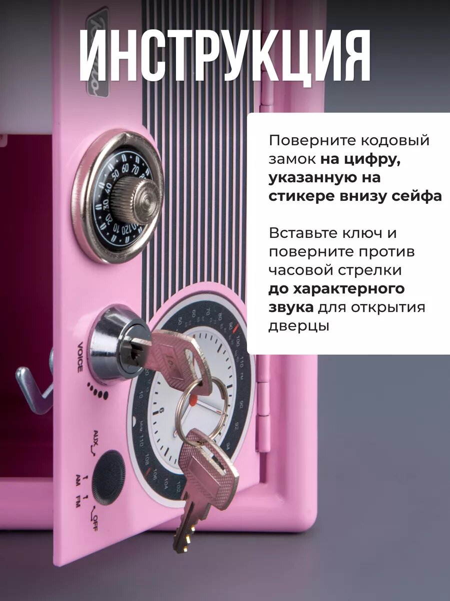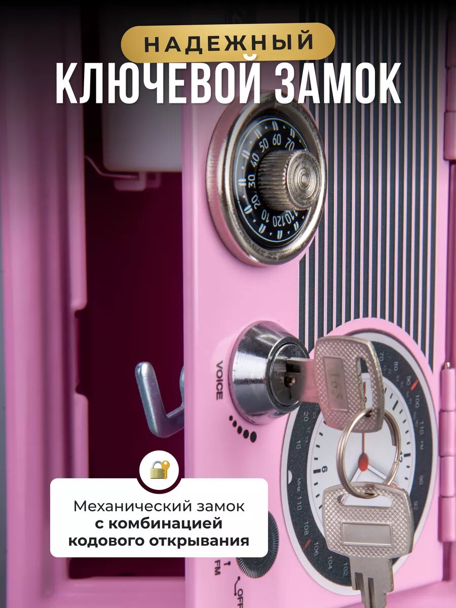 Копилка-сейф для денег в ретро стиле с замком и ключами, розовый интересное: