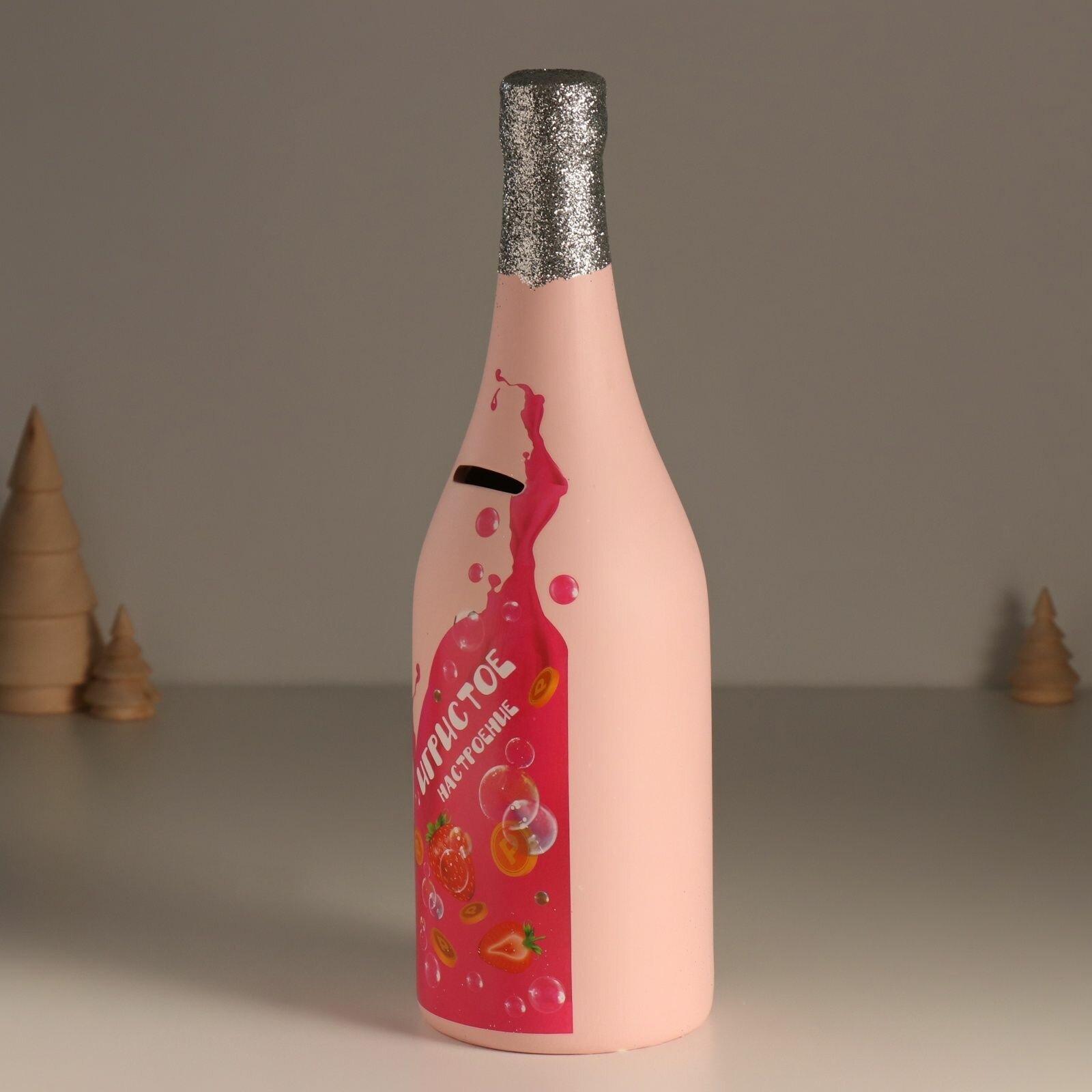Купить Копилка керамика "Бутылка шампанского - Игристое настроение" розовая 9,5х9,5х30 см