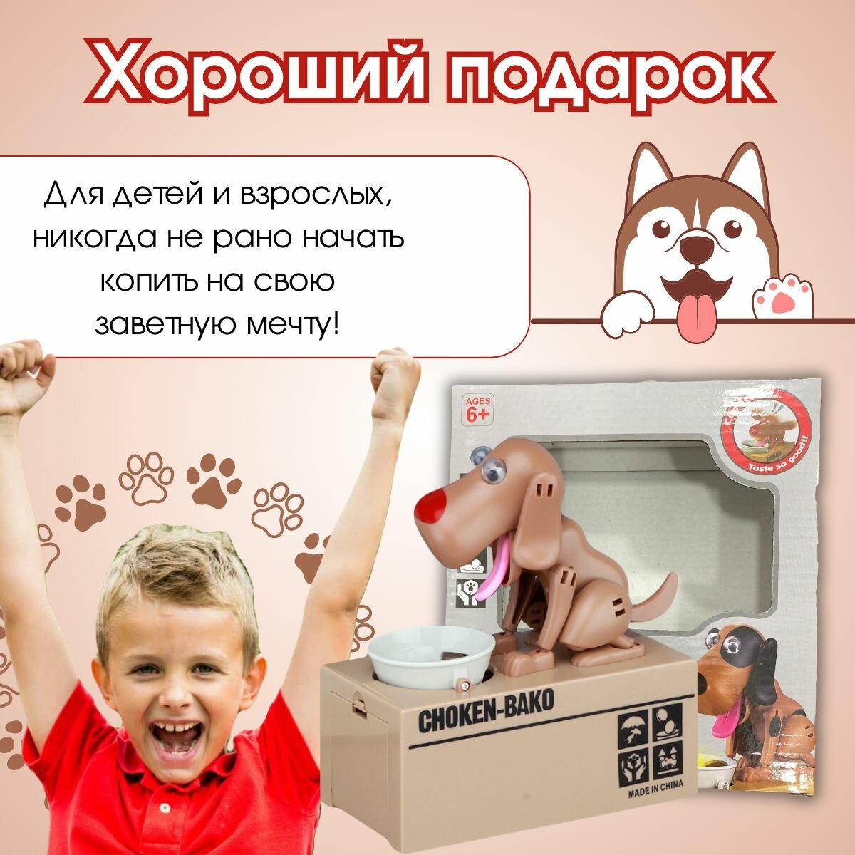 Купить Копилка Собачка воришка . Интерактивная копилка для детей.