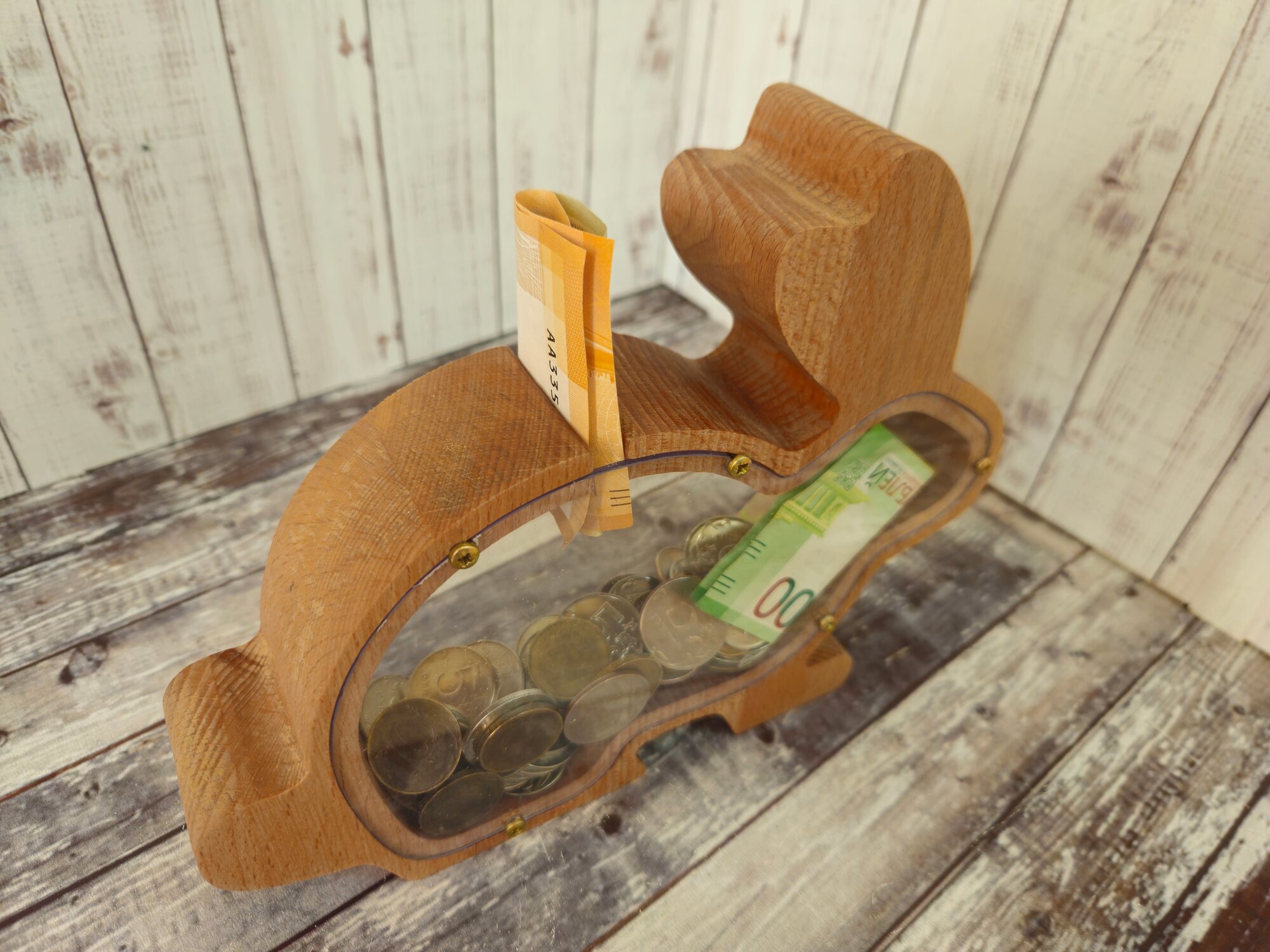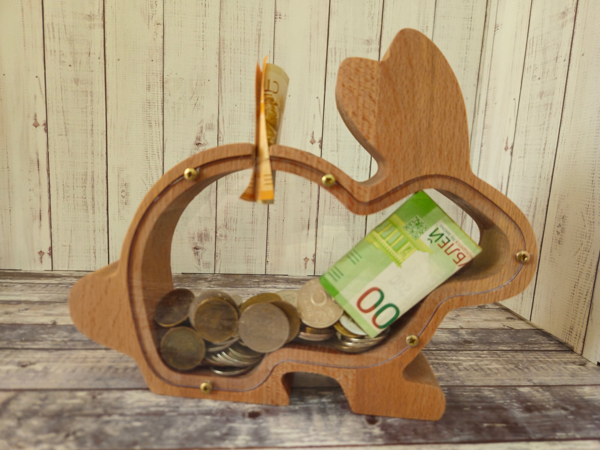 Купить Копилка "Заяц", массив бука, бук, ручная работа, 22x17,5x4 см