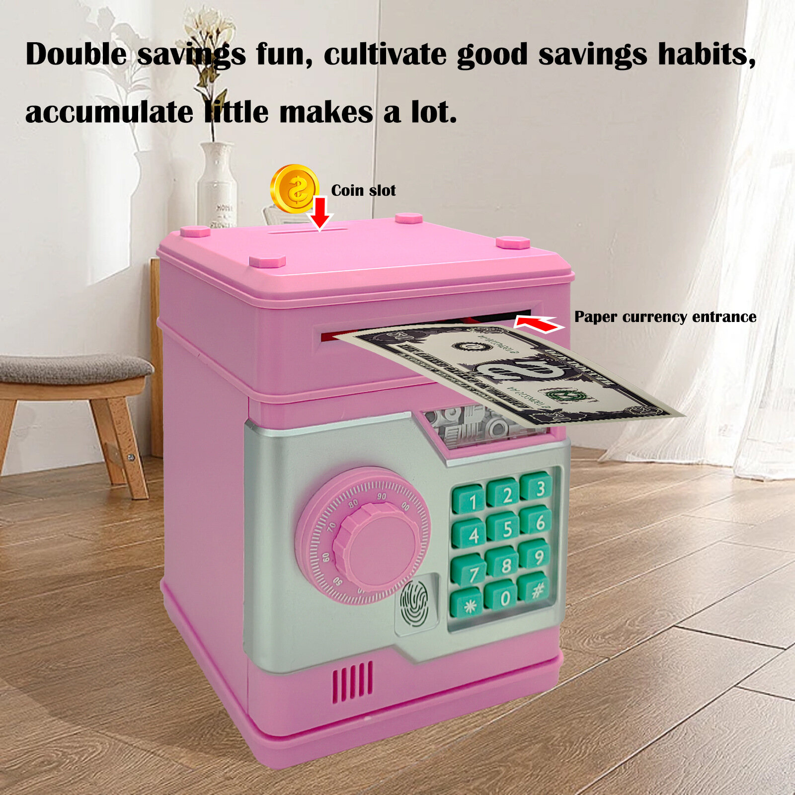 Копилка SHXH "Машина для снятия и внесения средств", ABS, с отпечатками пальцев, розовая интересное: