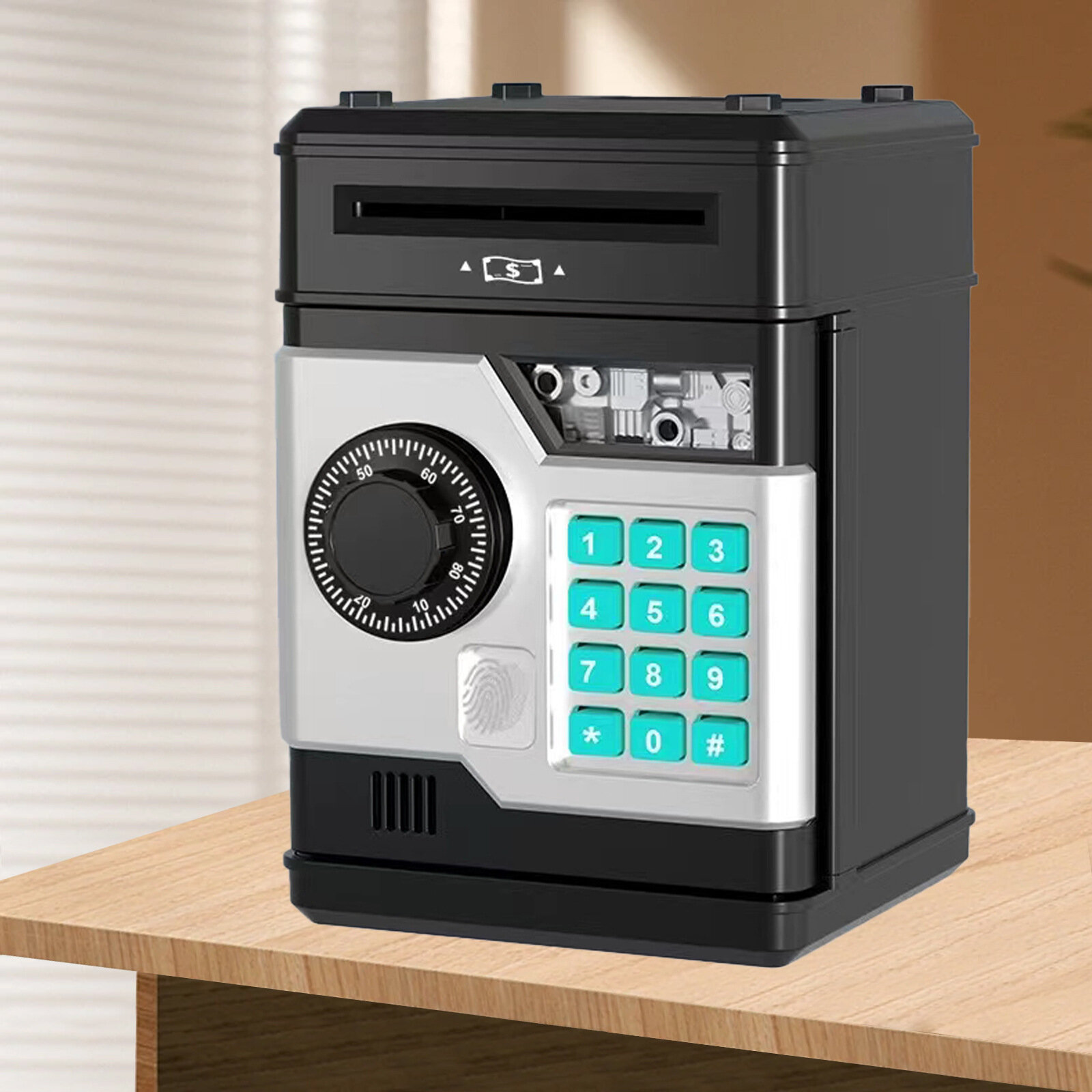 Копилка SHXH "Машина для снятия и внесения средств", ABS, с отпечатками пальцев, черная
