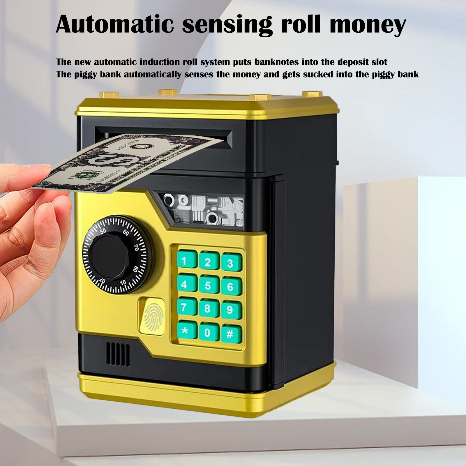 Копилка SHXH "Машина для снятия и внесения средств", с отпечатками пальцев, золотистая