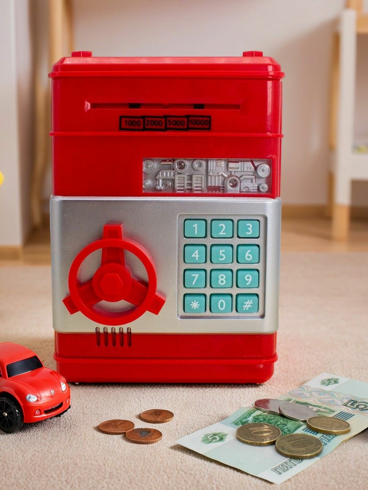Купить Сейф копилка для денег детская интерактивная "Money box", red 18x13 см